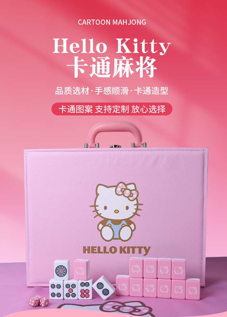 手搓麻将牌家用卡通KT猫中大号HelloKitty麻将40号宿舍麻将