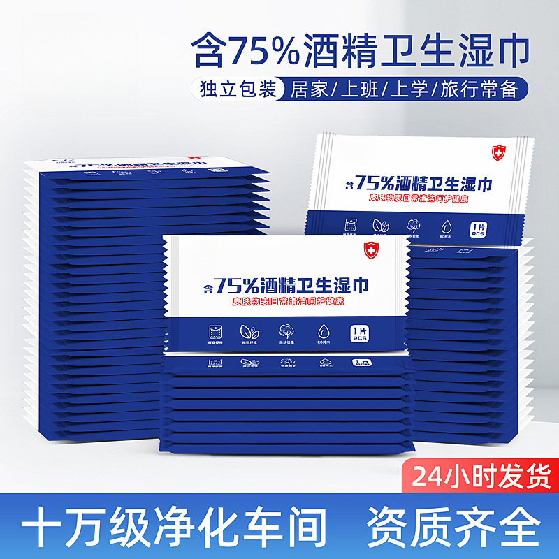 单片装75酒精湿巾一次性消毒湿纸巾独立包装成人酒精湿巾批发