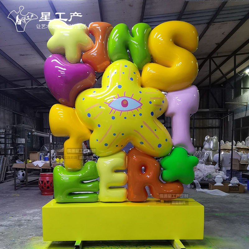アニメ人形彫刻抽象デパート商店街ショッピング広場美陳ガラス鋼アルファベットネット赤着地彫刻