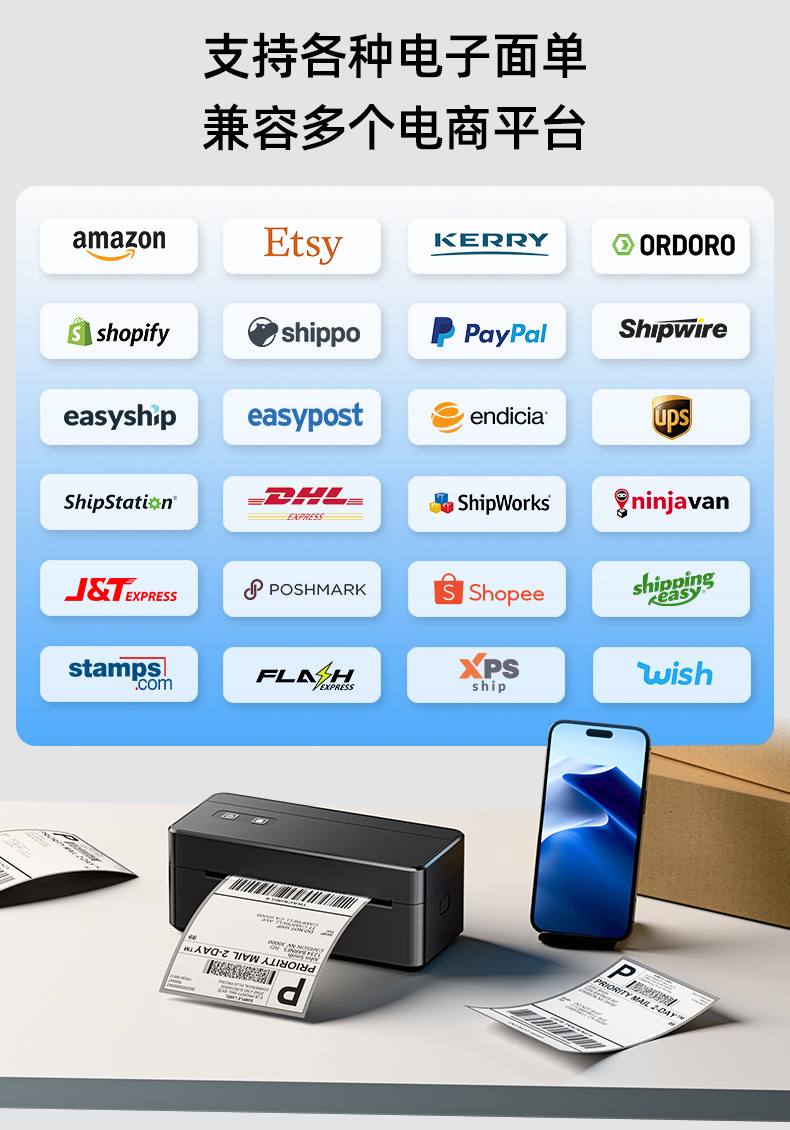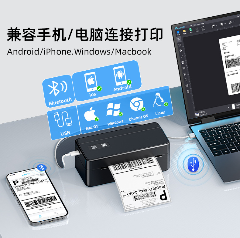 跨境电子面单110mm热敏打印机一联二联4寸标签蓝牙条码热敏打印机