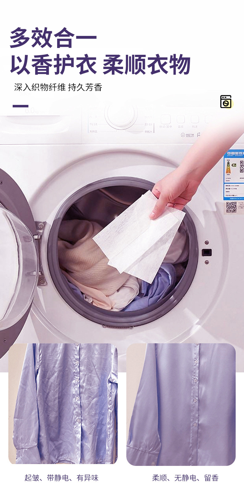 クロスボーダー乾燥機用衣類柔軟剤、香り長持ち、しわ取り、アロマペーパー、静電気防止衣類柔軟剤