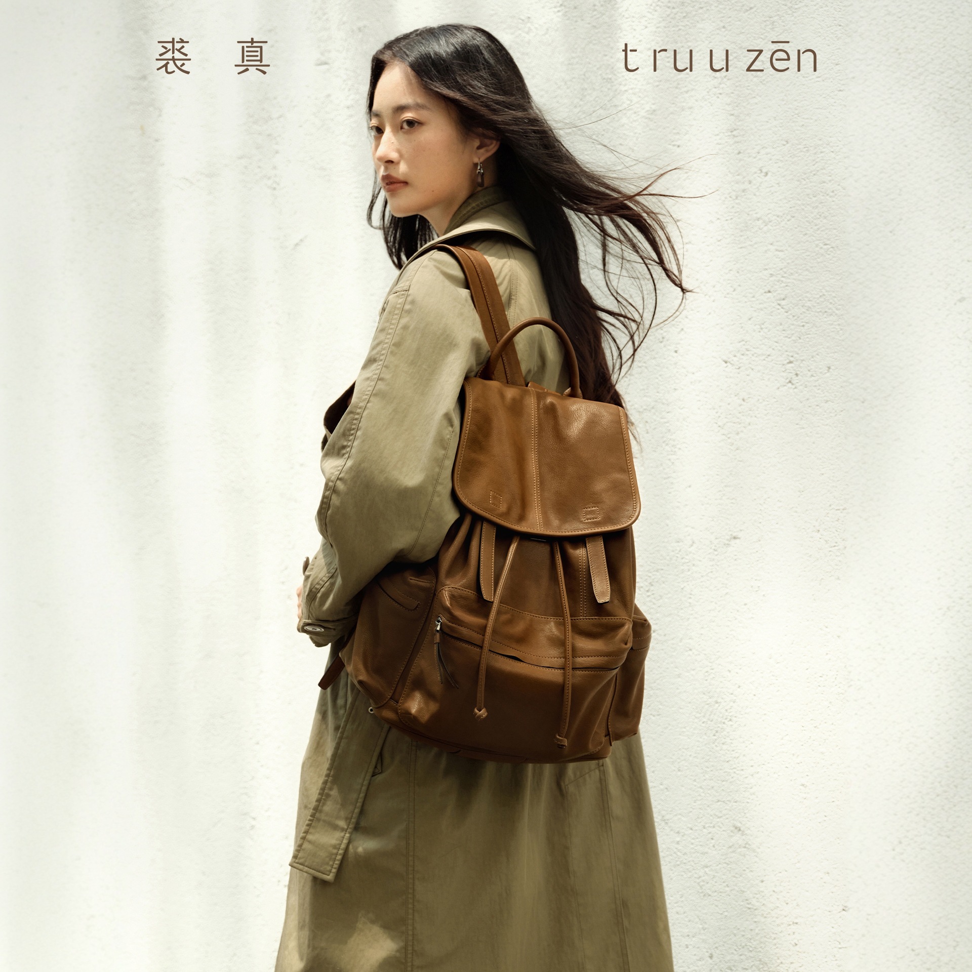 Qiu Zhen 植物タンニンなめしシープスキンメッセンジャーシリーズバックパック大容量通勤カジュアルバックパック 2025 新しいスタイル