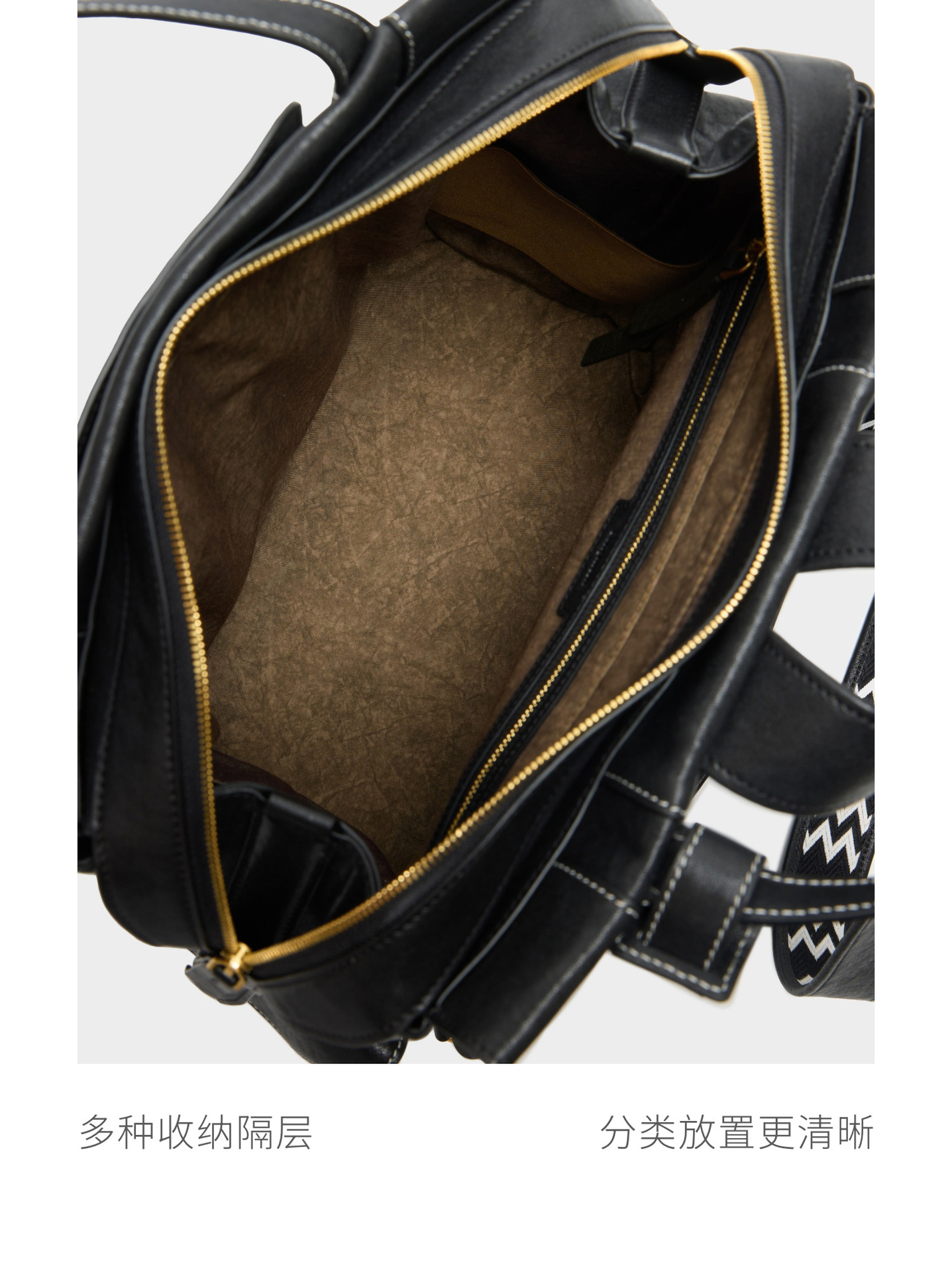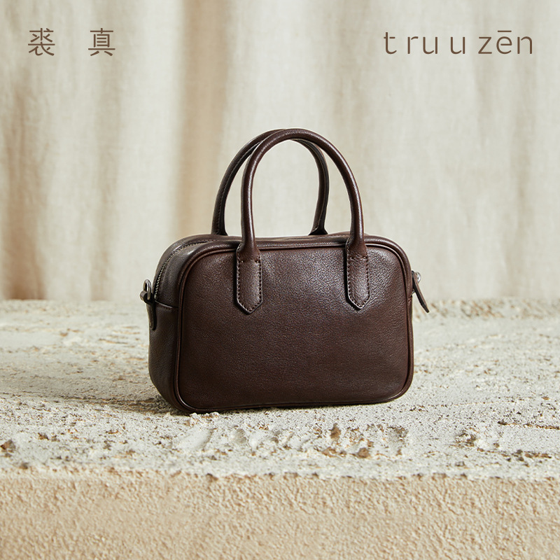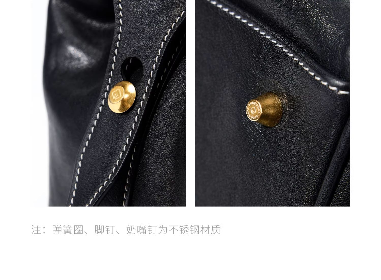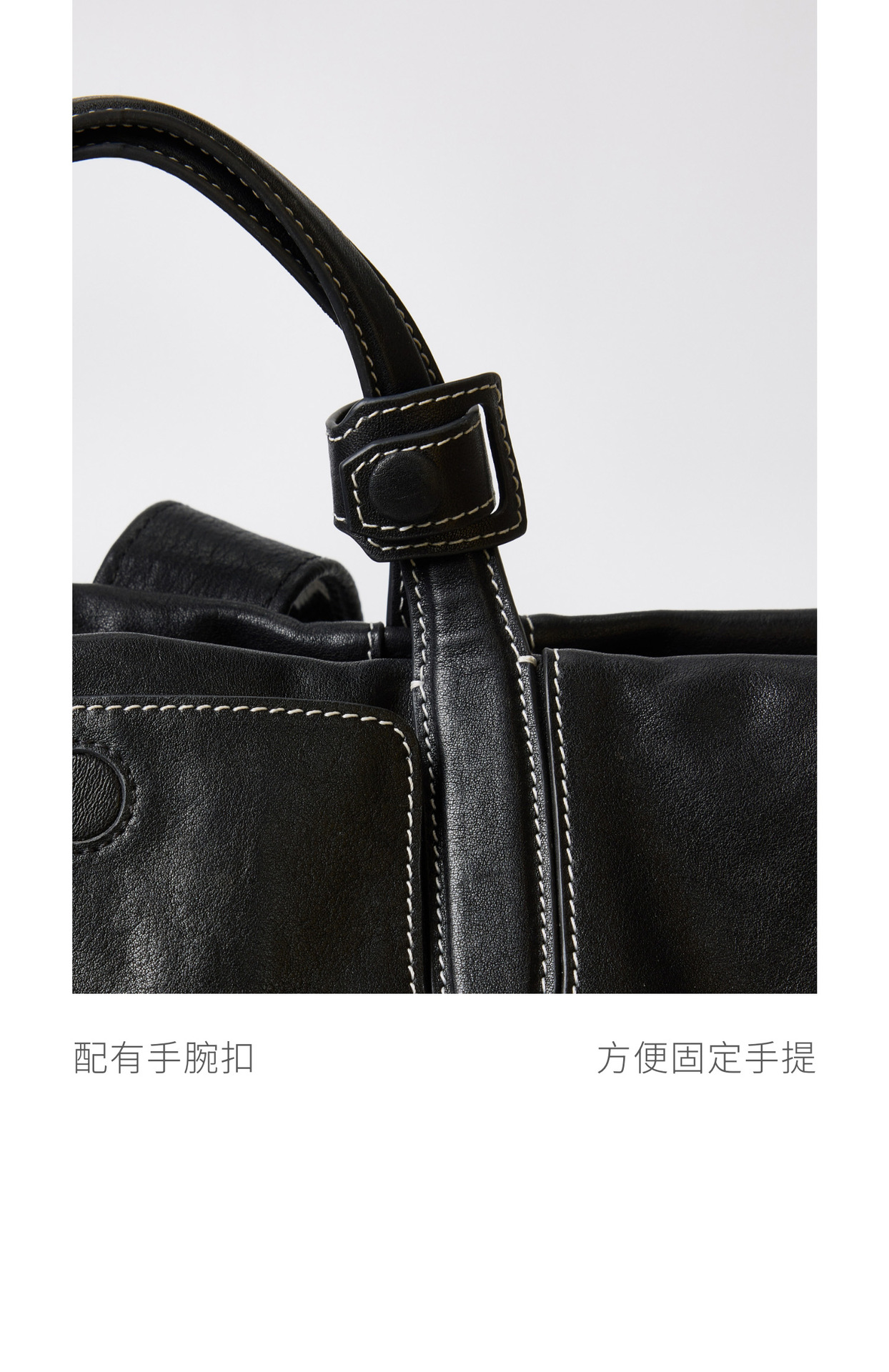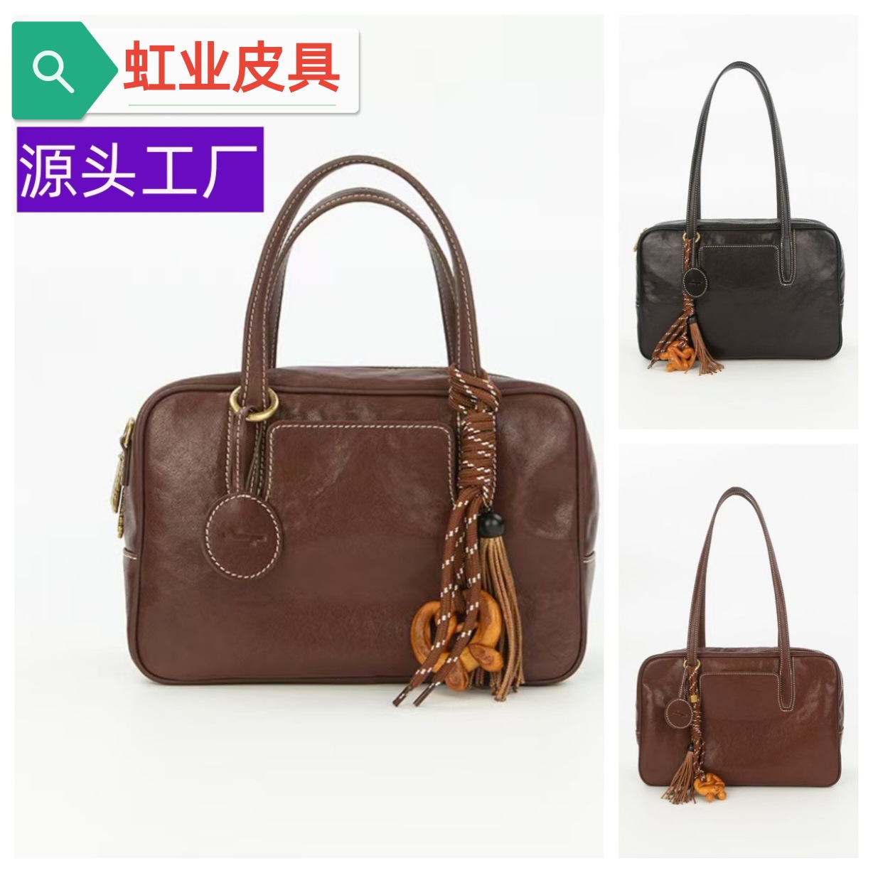 [Xi Mengyaoと同じスタイル] Qiu Zhen 植物タンニンなめし牛革と羊革インゴットボウリングバッグレトロ大容量通勤バッグ女性用
