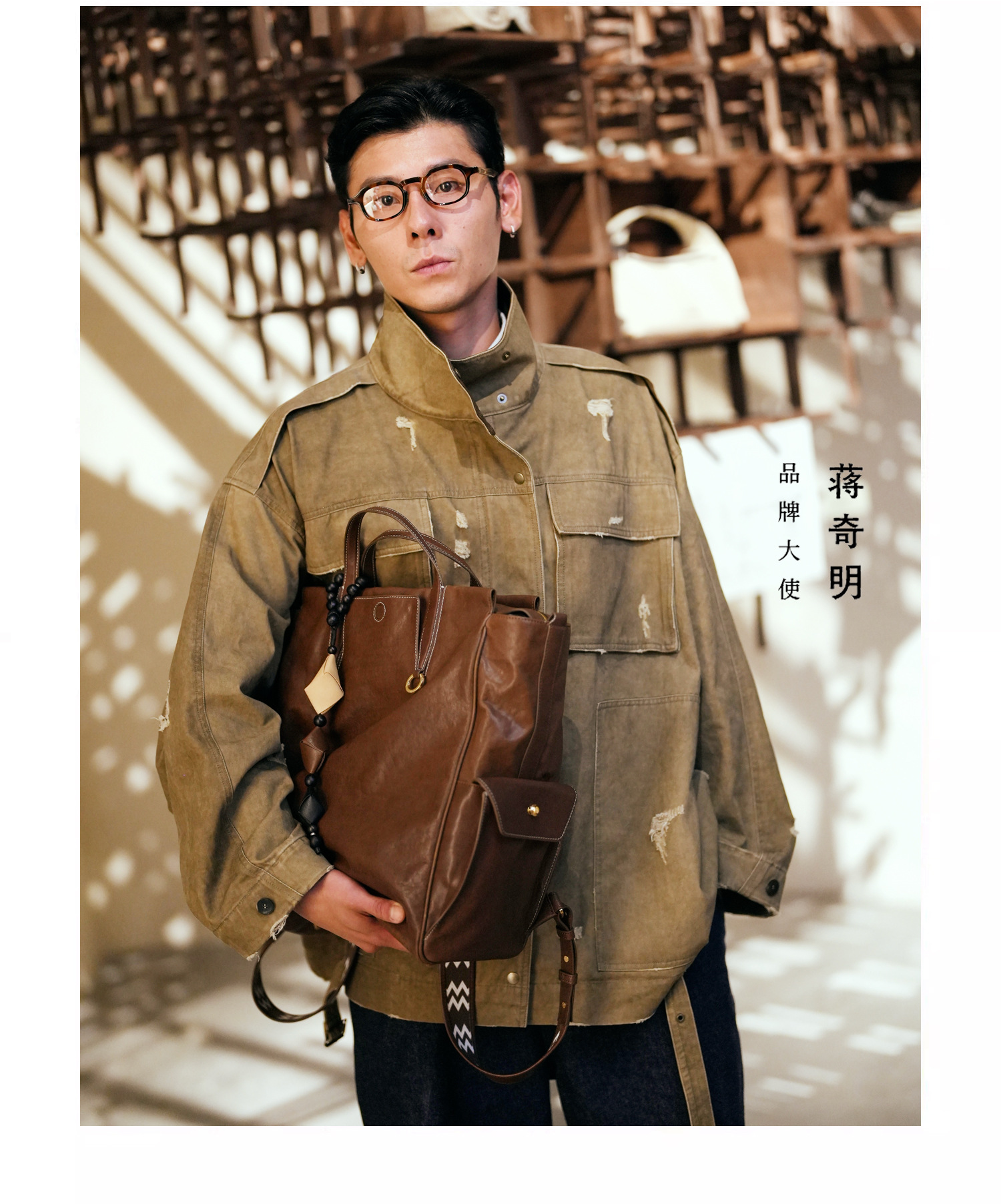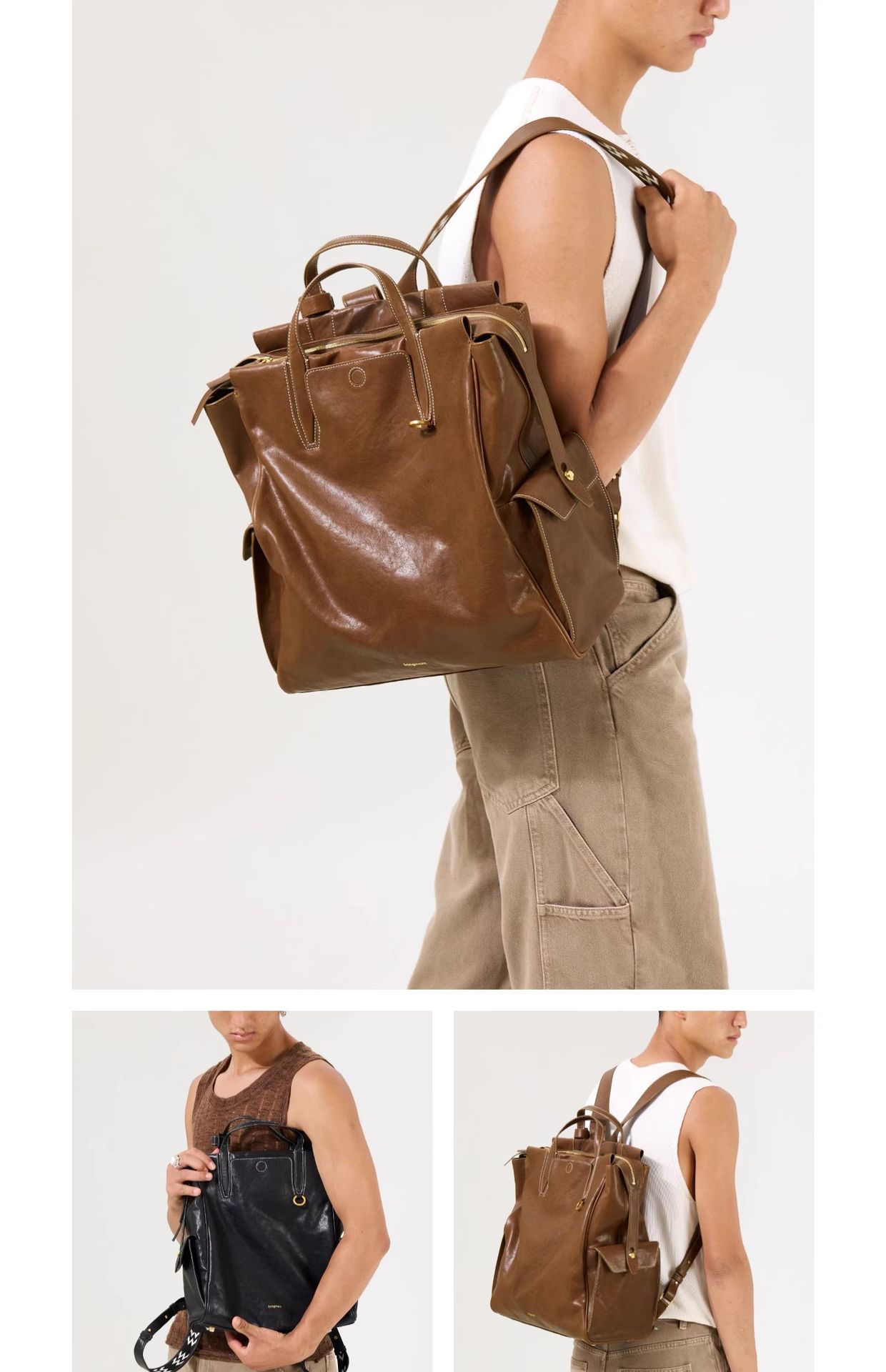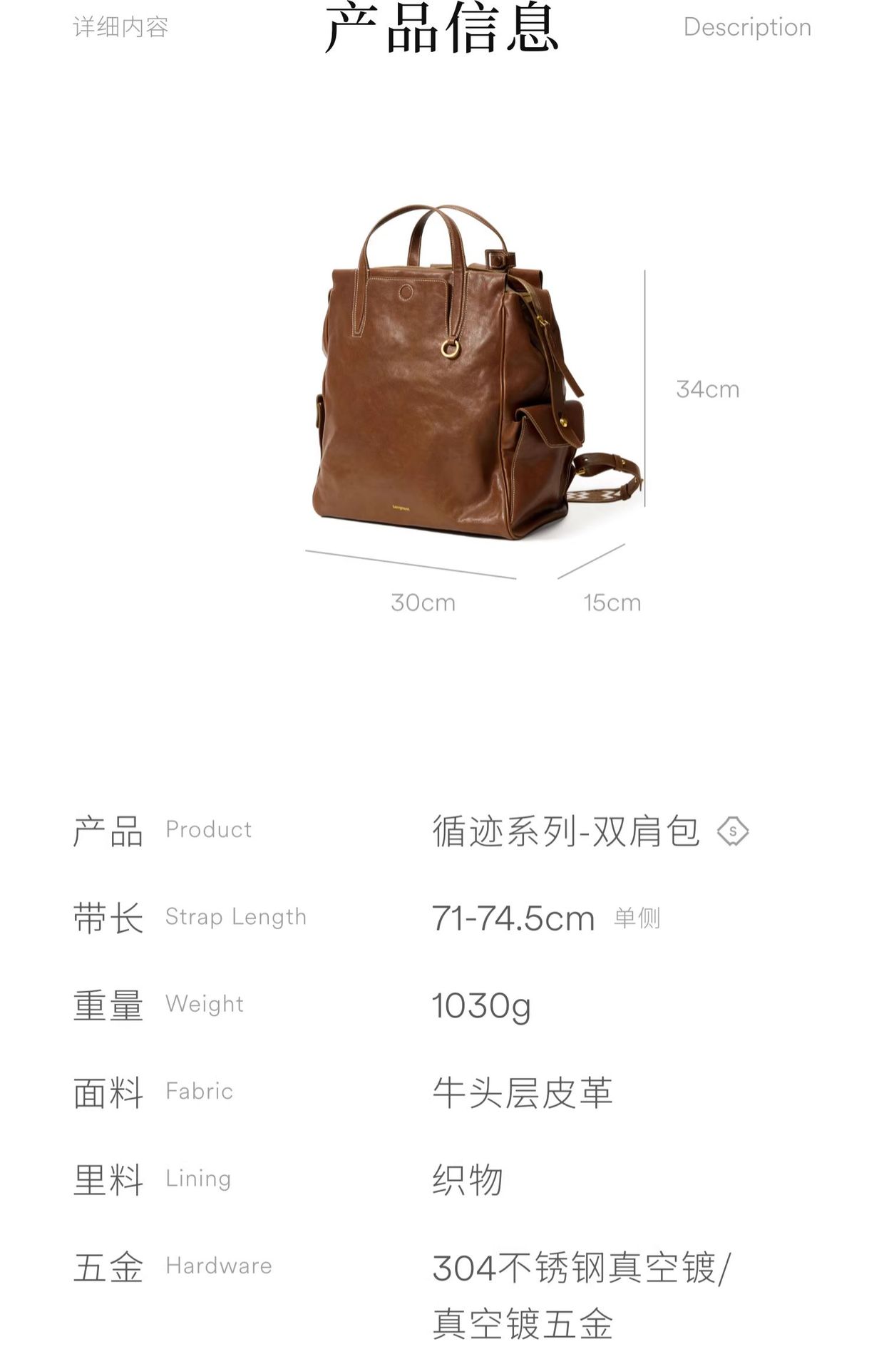 Song山下有循迹系列大号双肩包无性别复古植鞣皮16寸电脑包