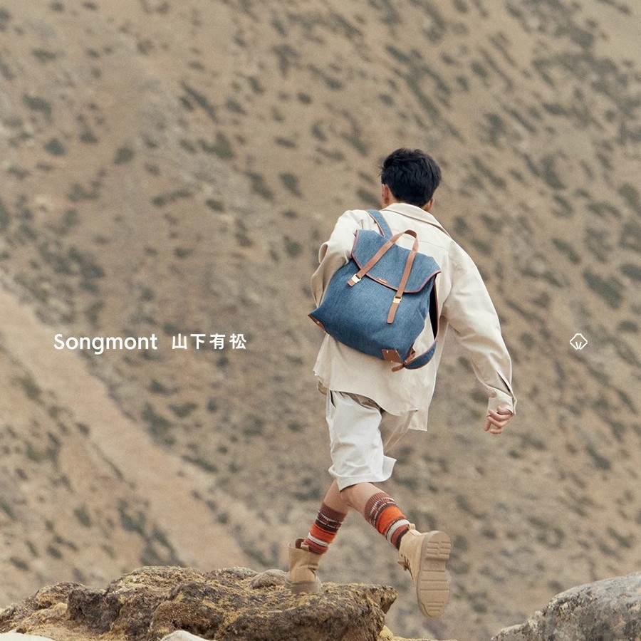 Songmont山下有松山行觅野系列竖版大号双肩包牛仔帆布户外背包