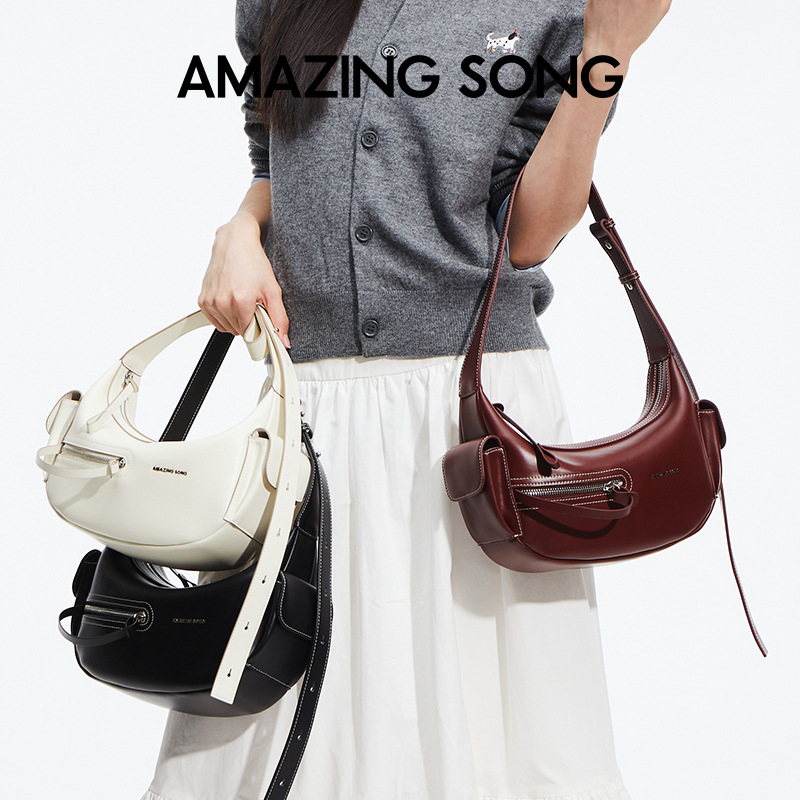 [陳都林と同じスタイル] Amazing Song リキュール三日月バッグ 新しい牛革ショルダークロスボディバッグ女性用