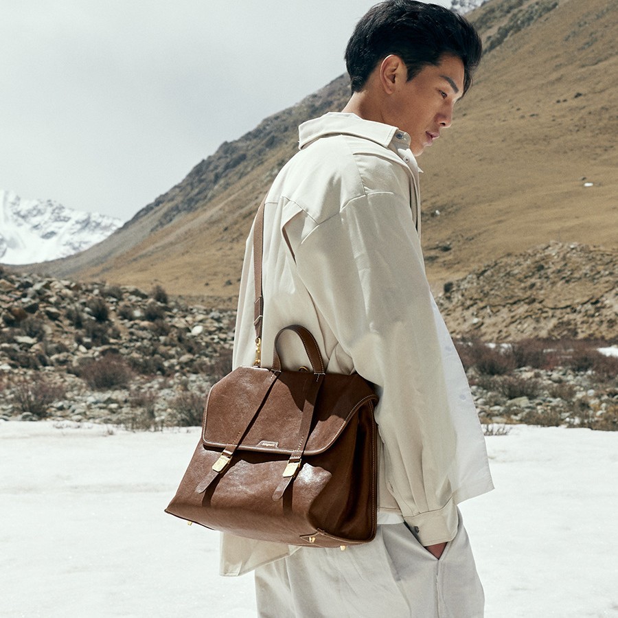 【郭柯宇同款】Songmont山下有松山行游历公文包植鞣皮斜挎双肩包