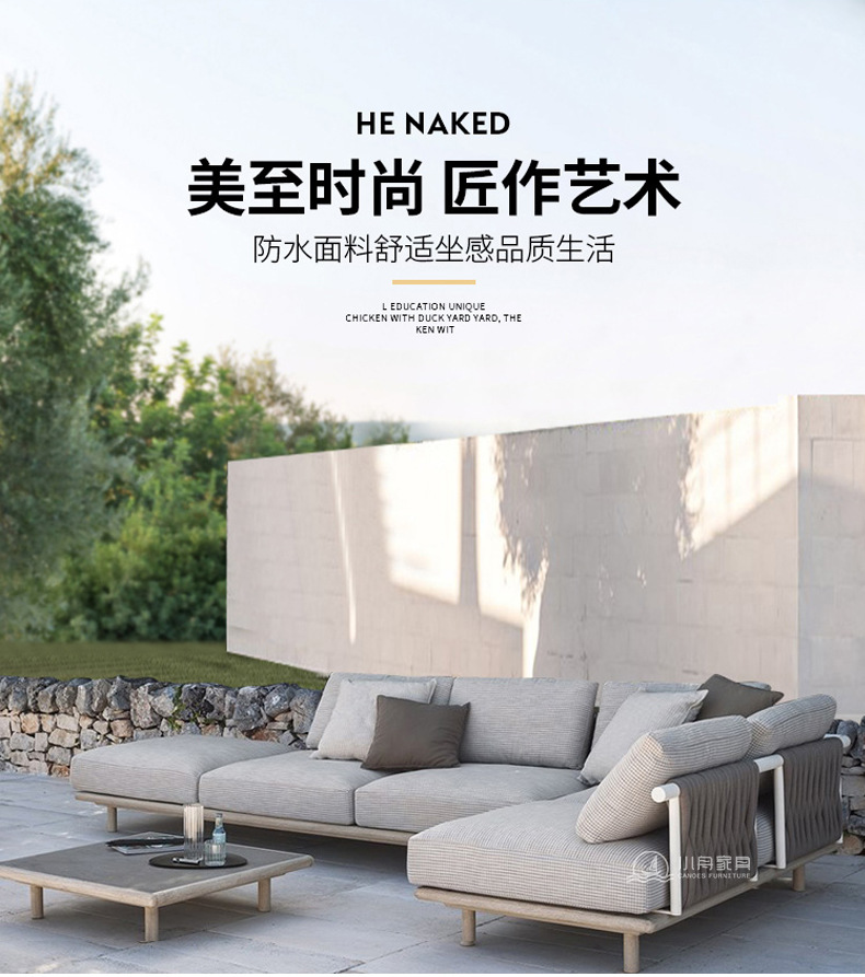 屋外ヴィラ中庭ソファロープ織りテラスガーデン家具屋外北欧ホテルテラスコンビネーションソファ家具
