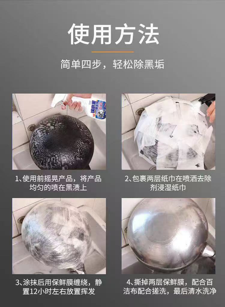 锅底黑垢清洁剂不锈钢一喷净锅底黑除垢清洗剂厨房铁锅除垢除黑剂