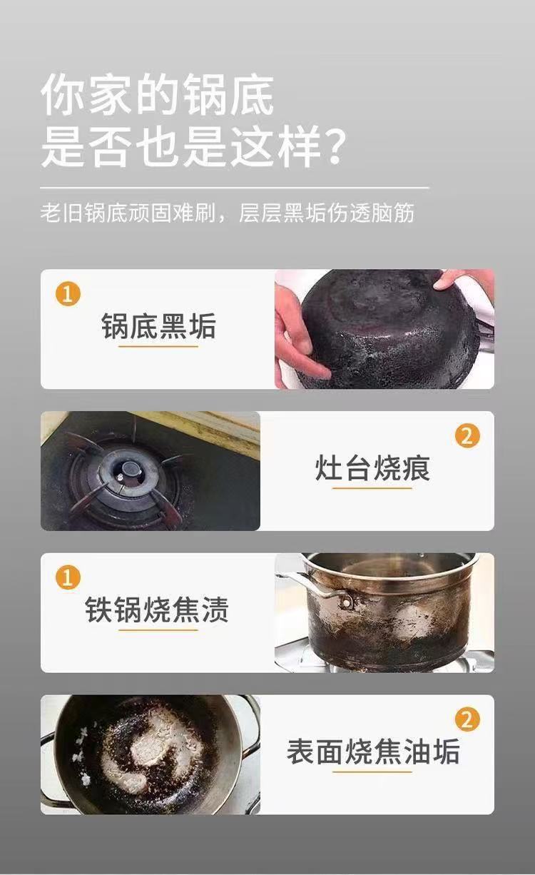 鍋底の黒い汚れクリーナー、強力除染、黒焦げ除去、重油洗浄、鉄鍋、ステンレス黒い汚れ加工品