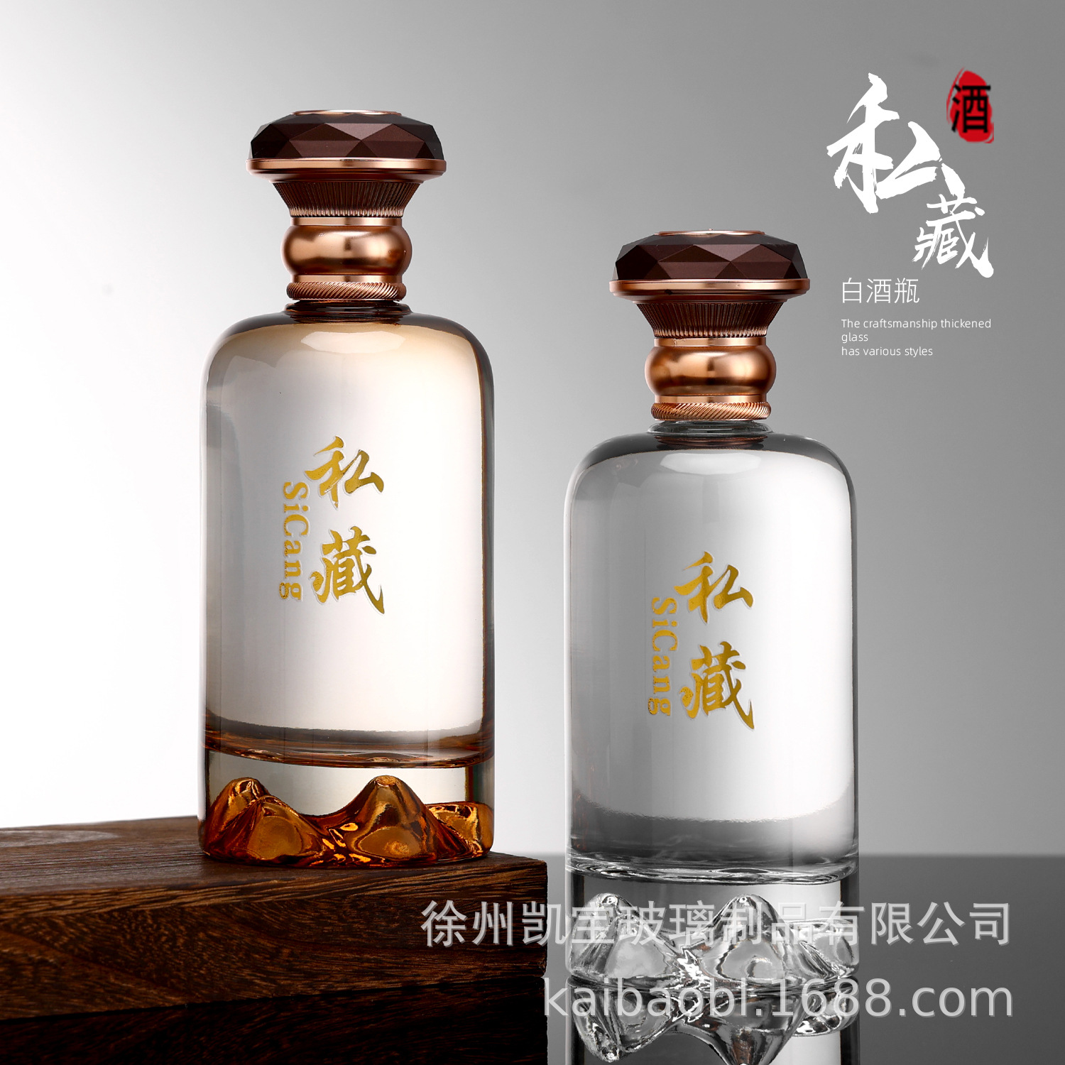 晶白料山底款白酒瓶空瓶密封加厚一斤装玻璃白酒瓶高颜值泡酒瓶