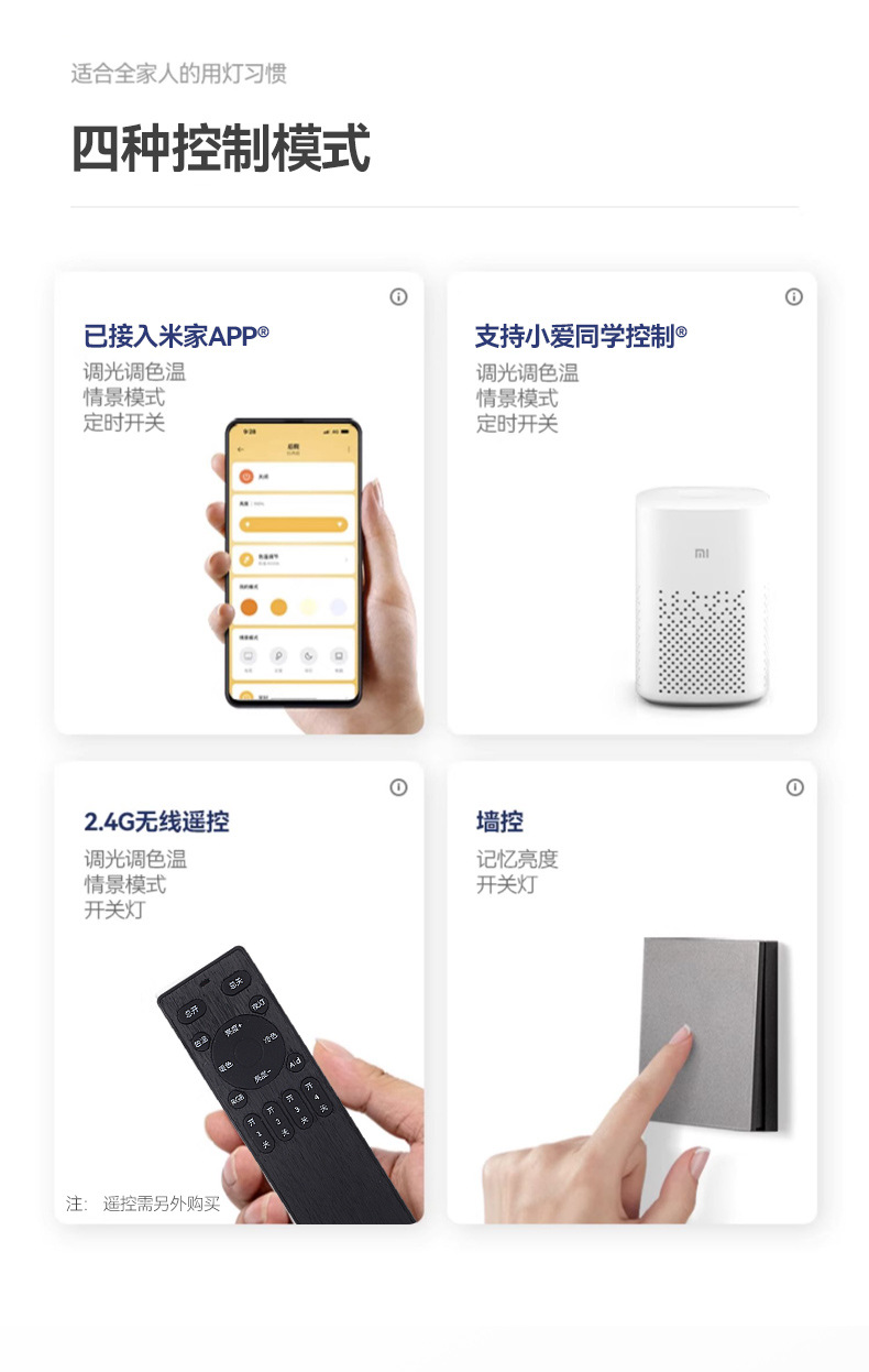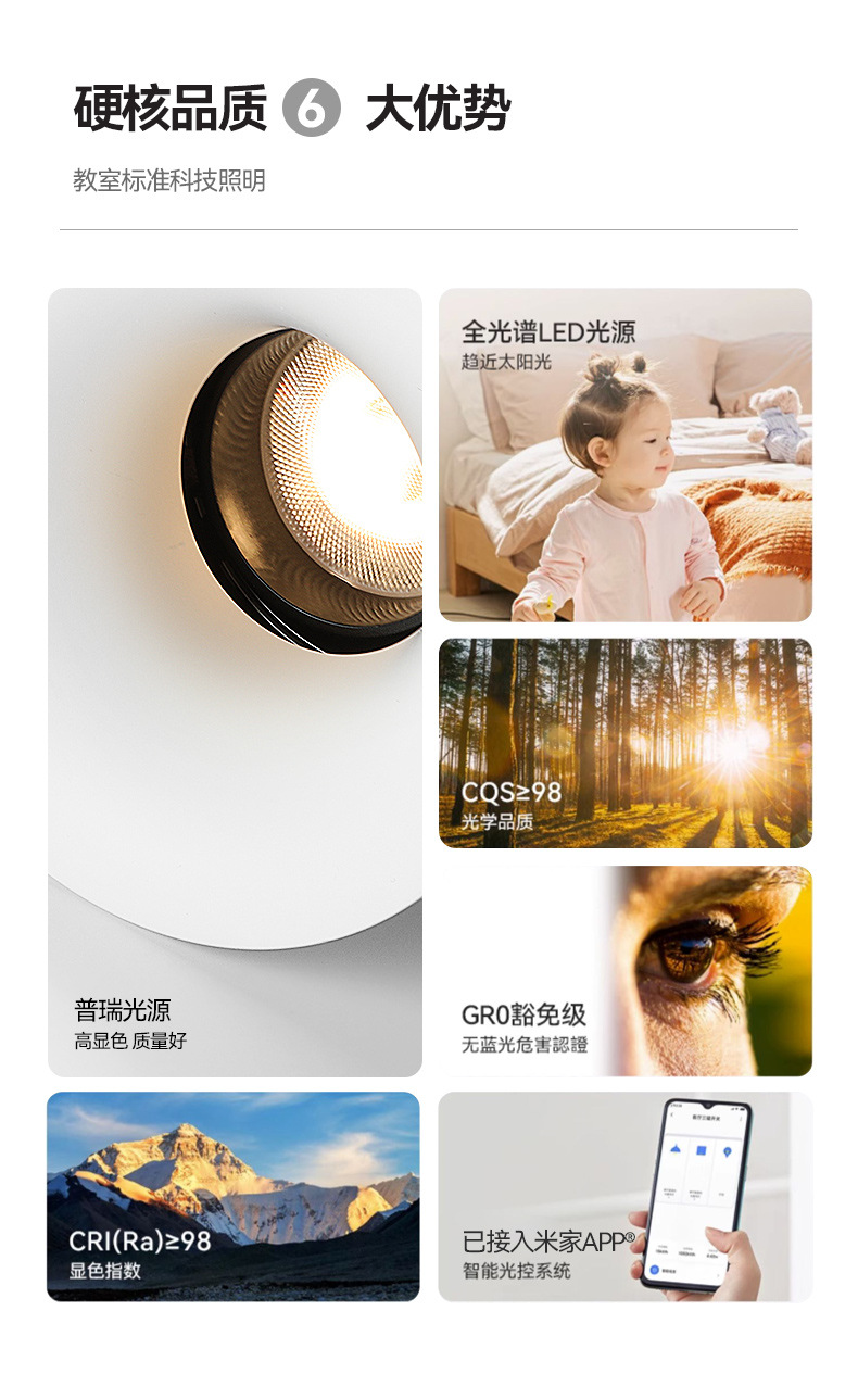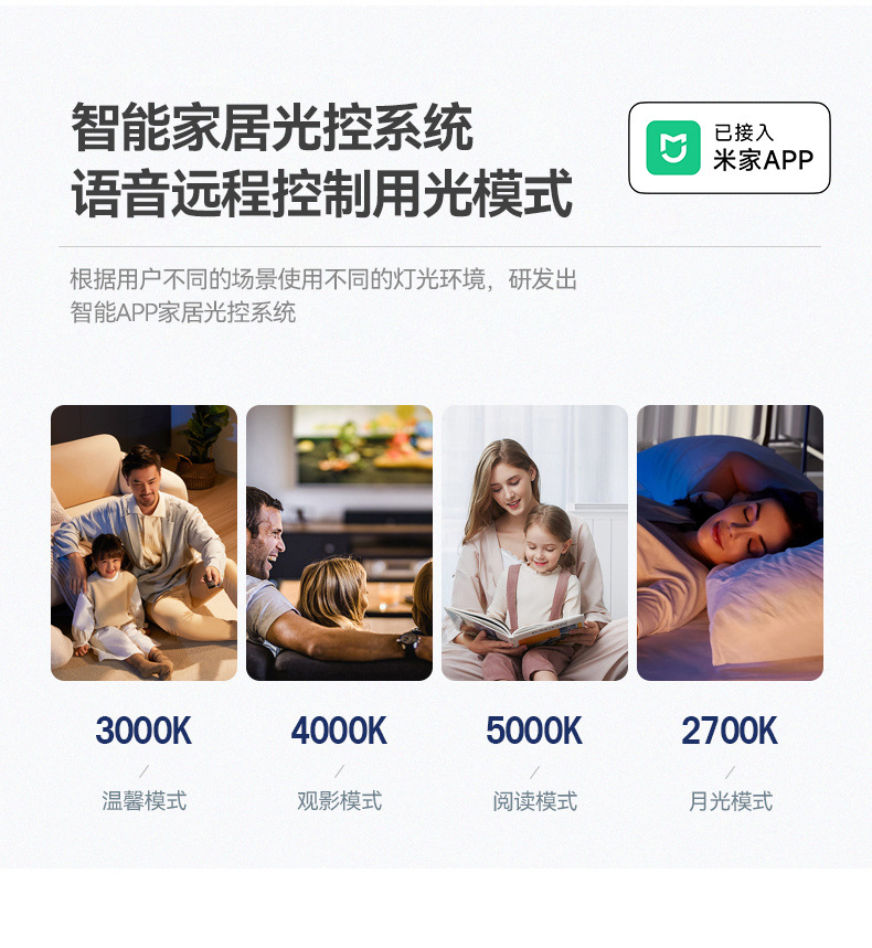 色温 进口普瑞3000K(98显指),进口普瑞3500K(98显指),进口普瑞4000K(98显指),进口普瑞6000K(98显指),米家智能2700K-6500K