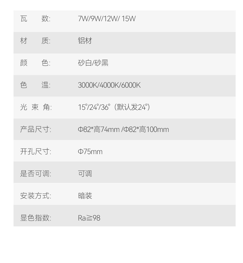 功率 7W-白色-开孔75,10W-白色-开孔75,12W-白色-开孔75,7W-黑色-开孔75,10W-黑色-开孔75,12W-黑色-开孔75