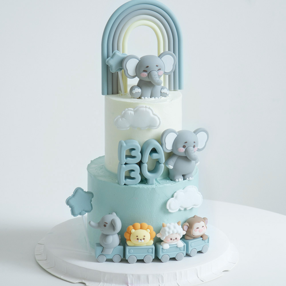 动物主题蛋糕装饰猴子狮子长颈鹿大象彩虹小树桌面摆件甜品台装扮