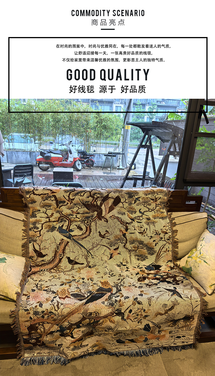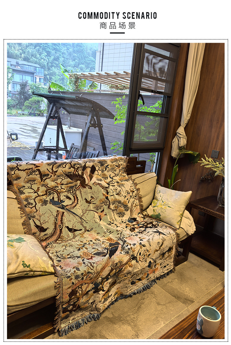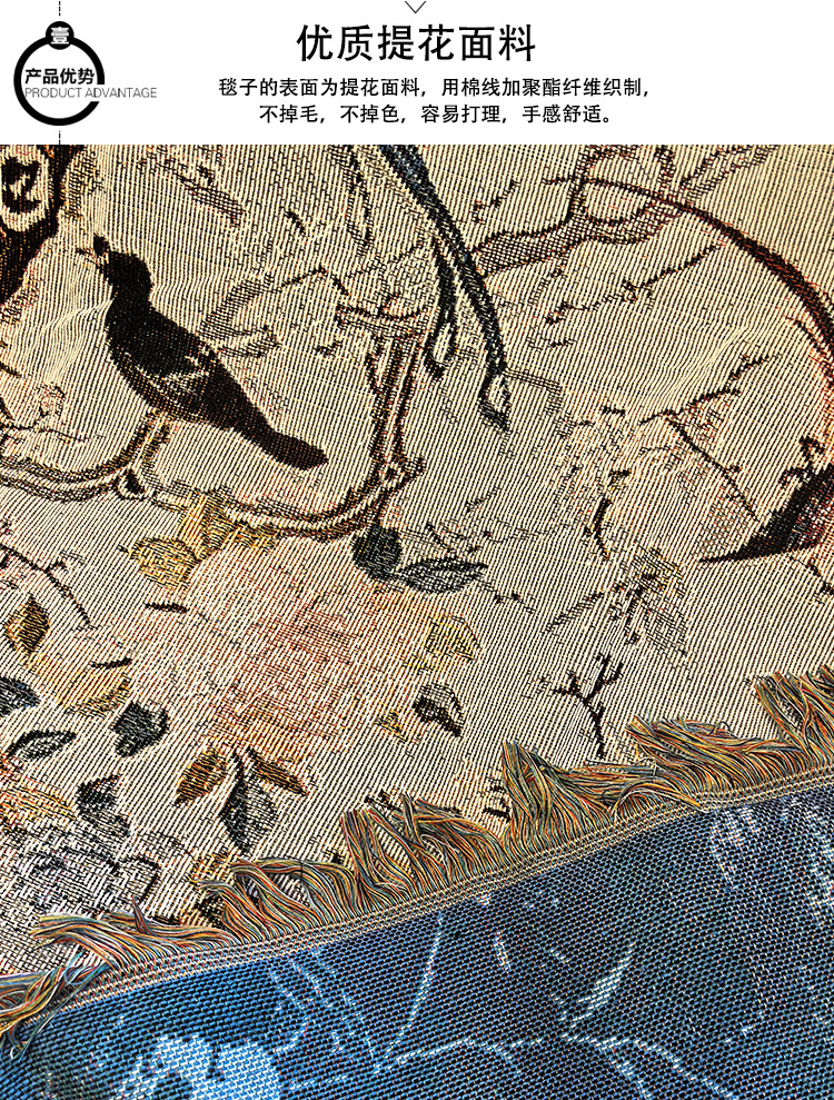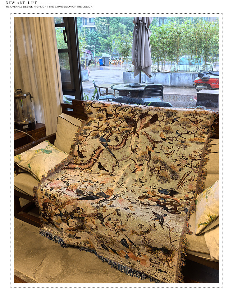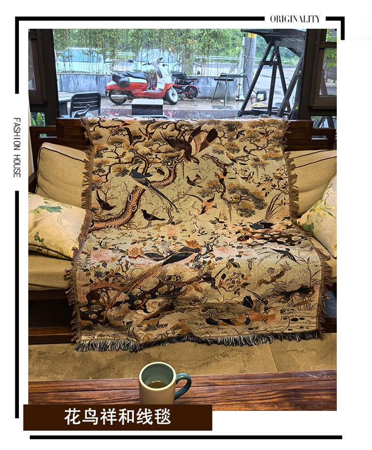 花と鳥中国のレトロなスタイルのシングルソファブランケットカバーブランケットニットジャカードブランケット壁装飾生地タペストリー綿ブランケット