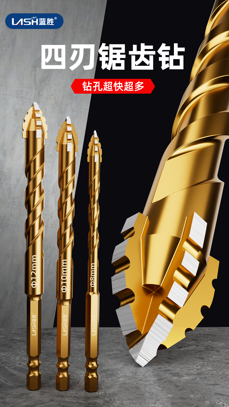 4枚刃鋸歯偏心ドリルビット タイル穴あけ コンクリート電気ドリル ローターハードネス ドライドリル