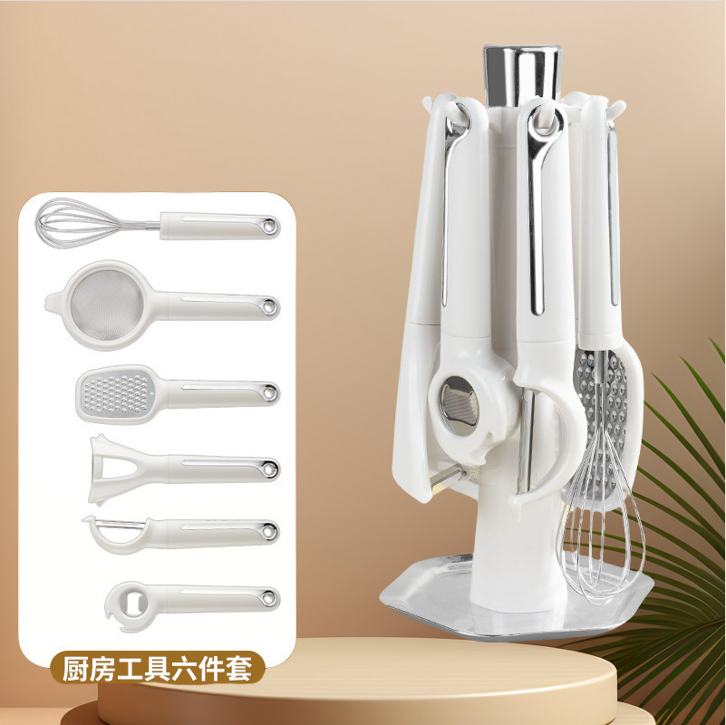 跨境厨房小工具套装 带支架多功能瓜刨打蛋器刨丝器厨具6件套