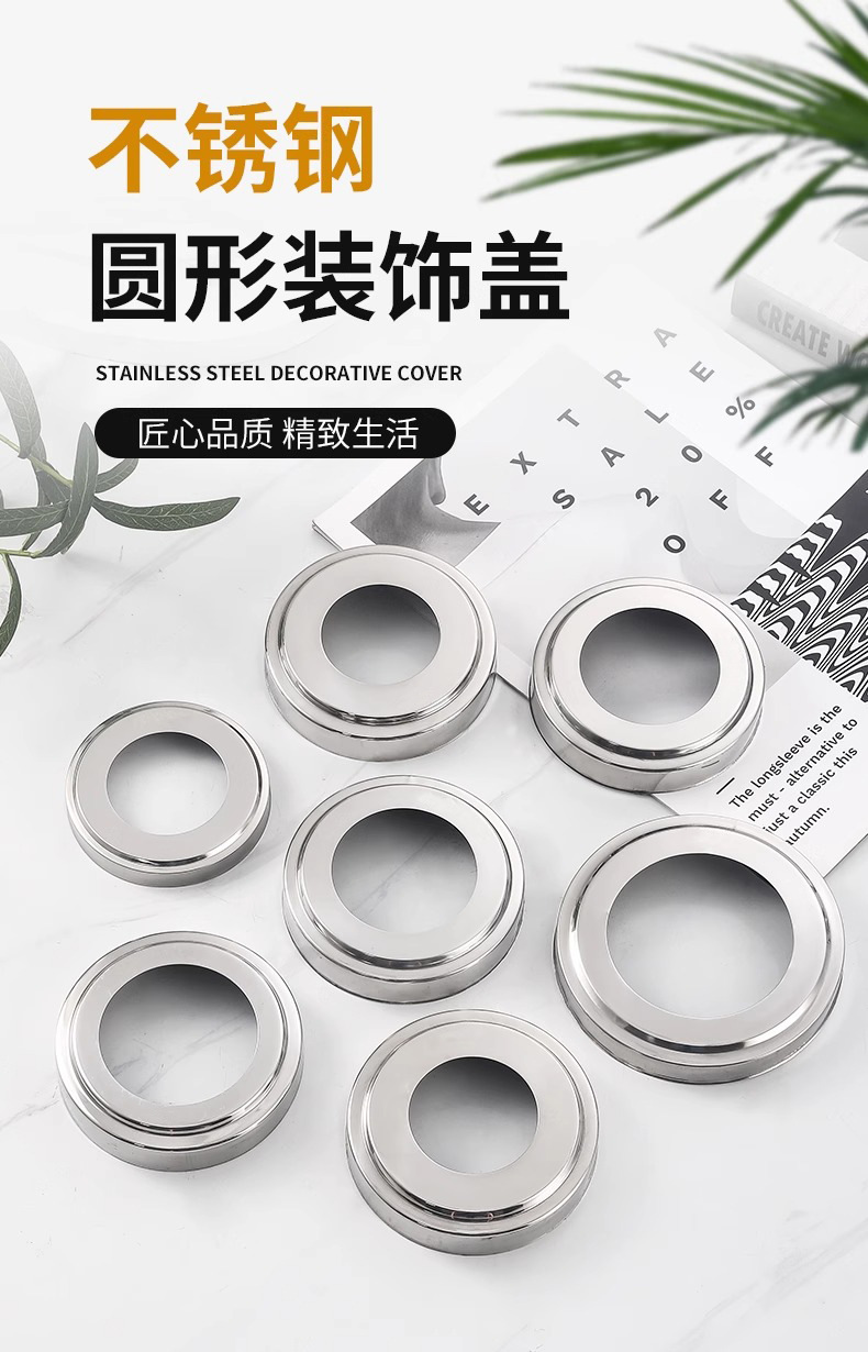 201ステンレス装飾カバー51/63/76逸品円形管マスク階段柱手すり底カバー線穴カバー