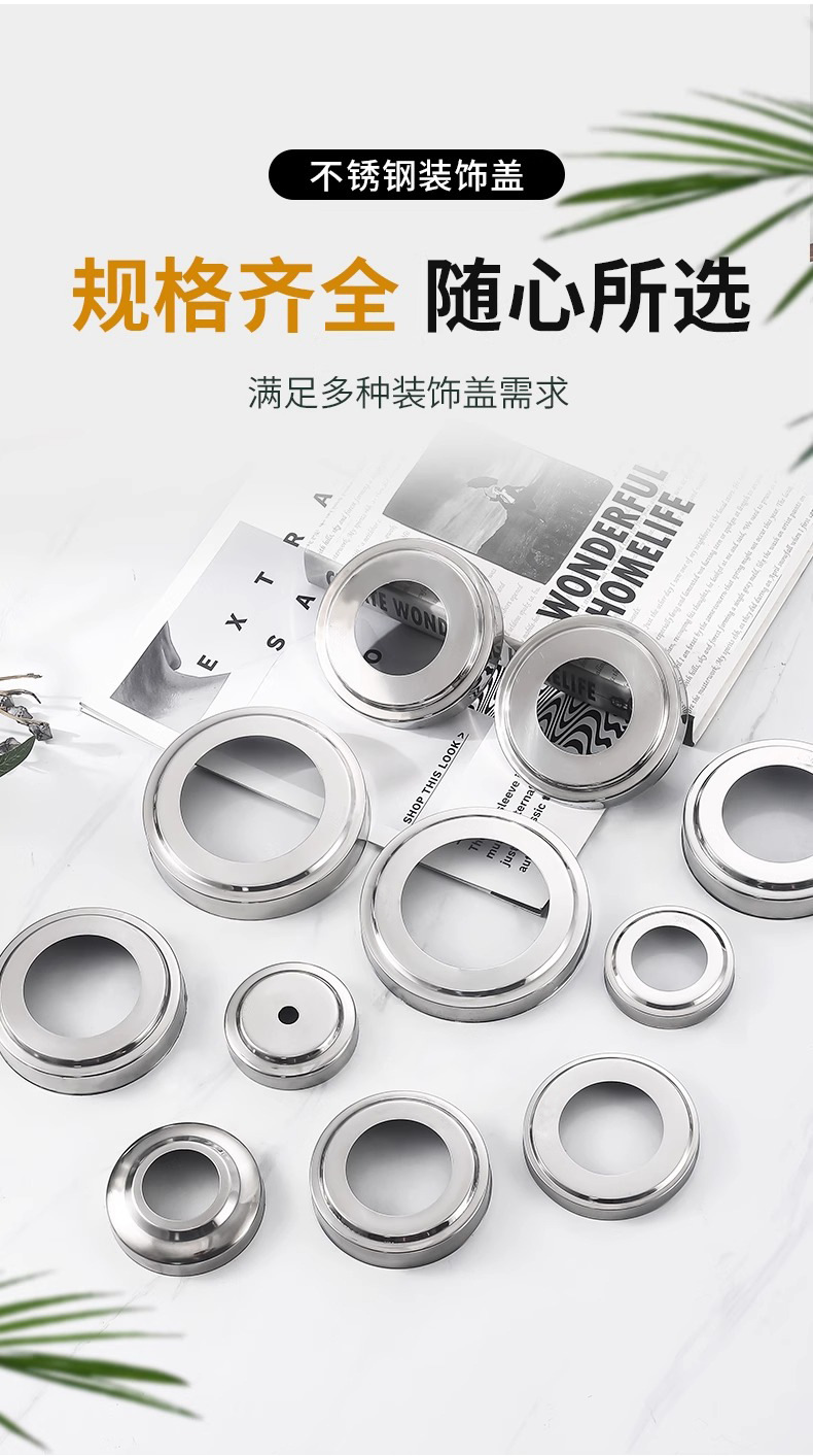 304不锈钢装饰盖51/63/76精品圆形管遮丑 楼梯立柱栏杆底盖线孔盖