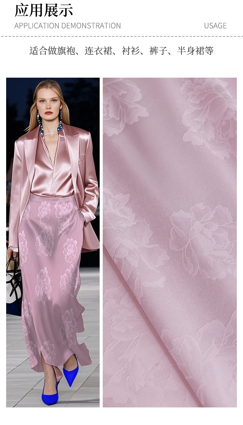 夏牡丹ジャカード生地模造アセテートサテン滑らかなシルクチャイナドレスキュロット服デザイナー生地