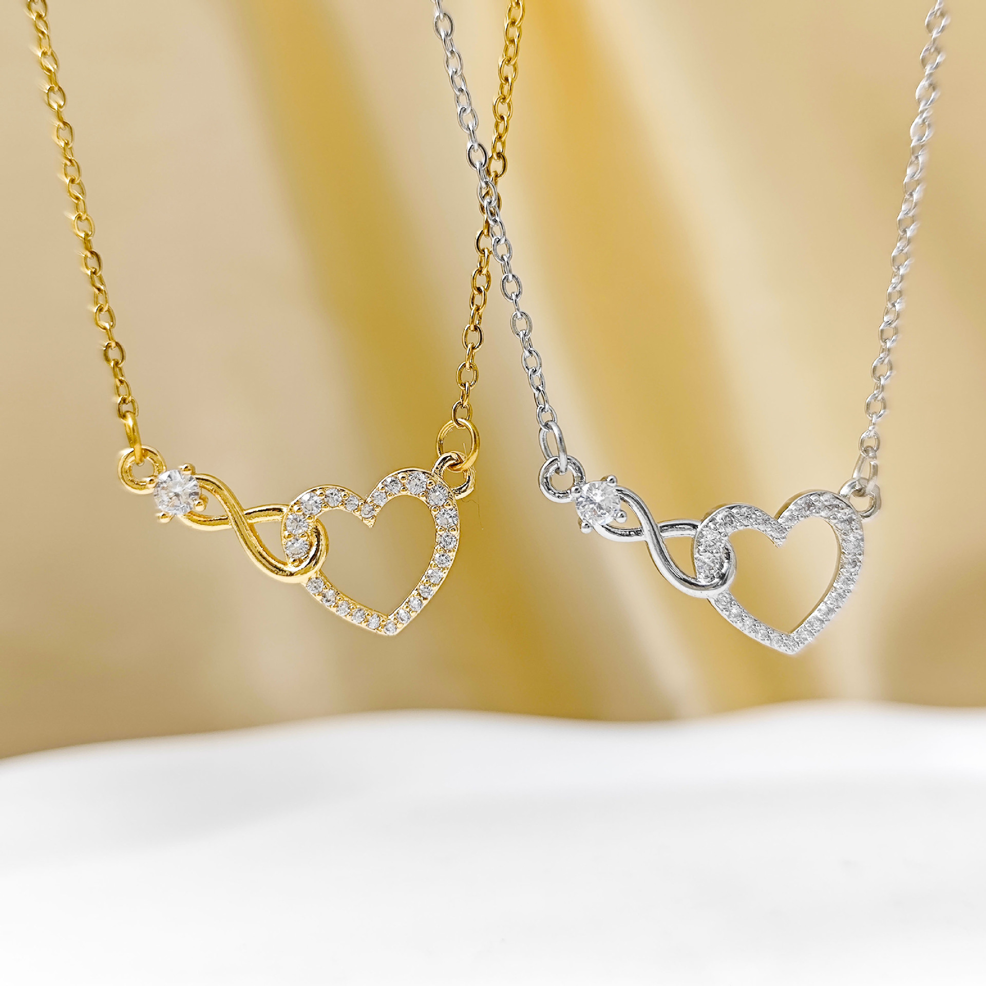 女性用クロスボーダー新製品インフィニットラブネックレス、ファッショナブルな連動ハート型インフィニティトレンディ鎖骨チェーンネックレス、色あせしません。