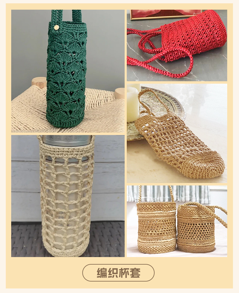綿ラフィア糸手織りバッグ夏帽子麦わら帽子フックバッグフック帽子糸素材バッグラフィア紙