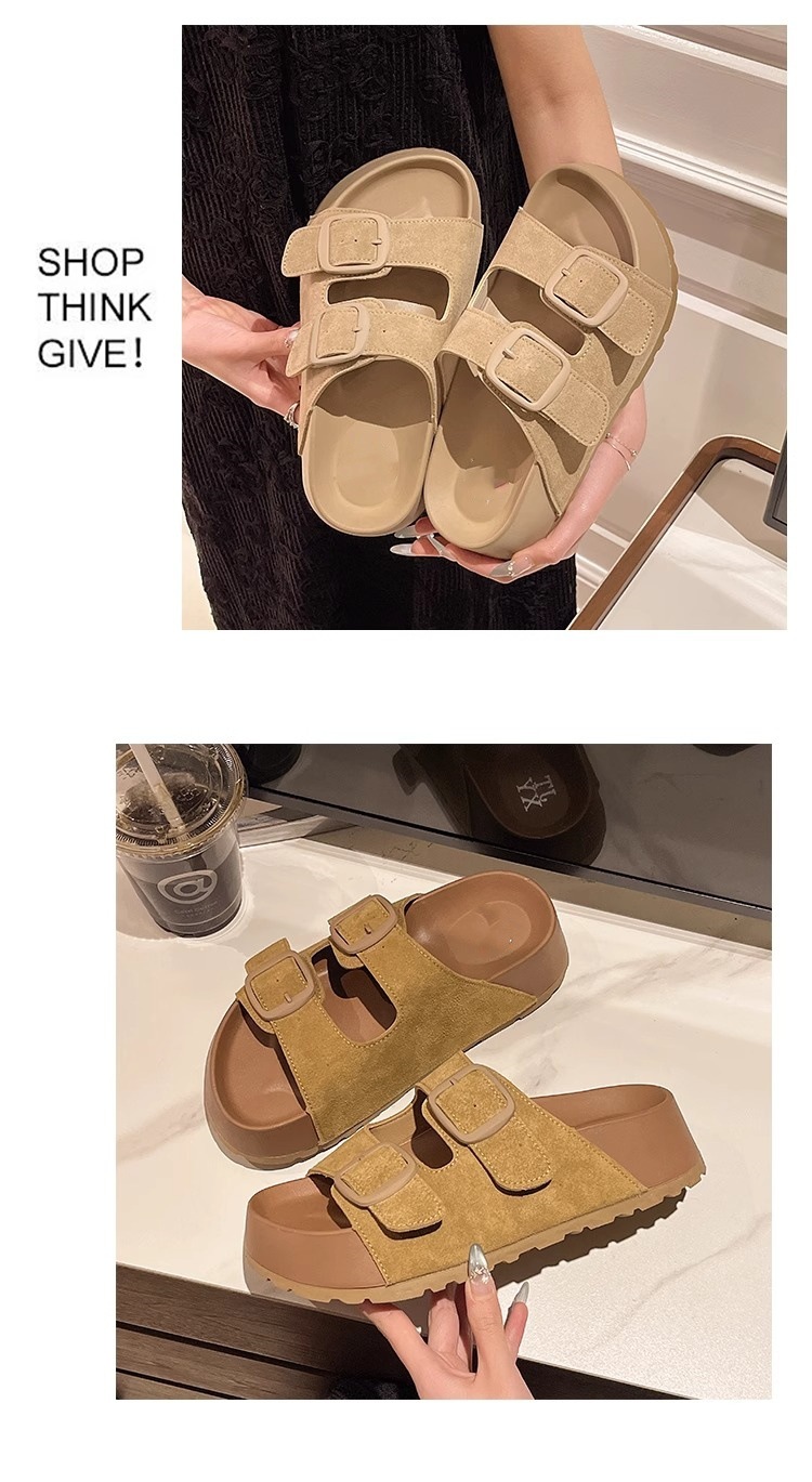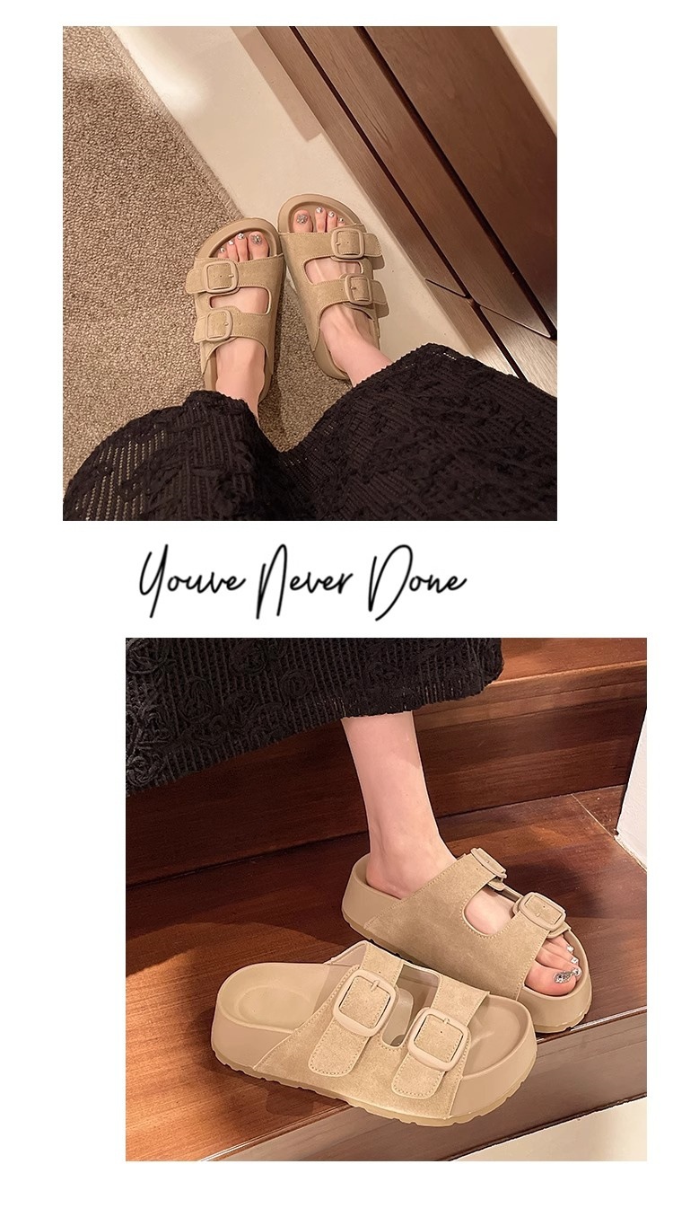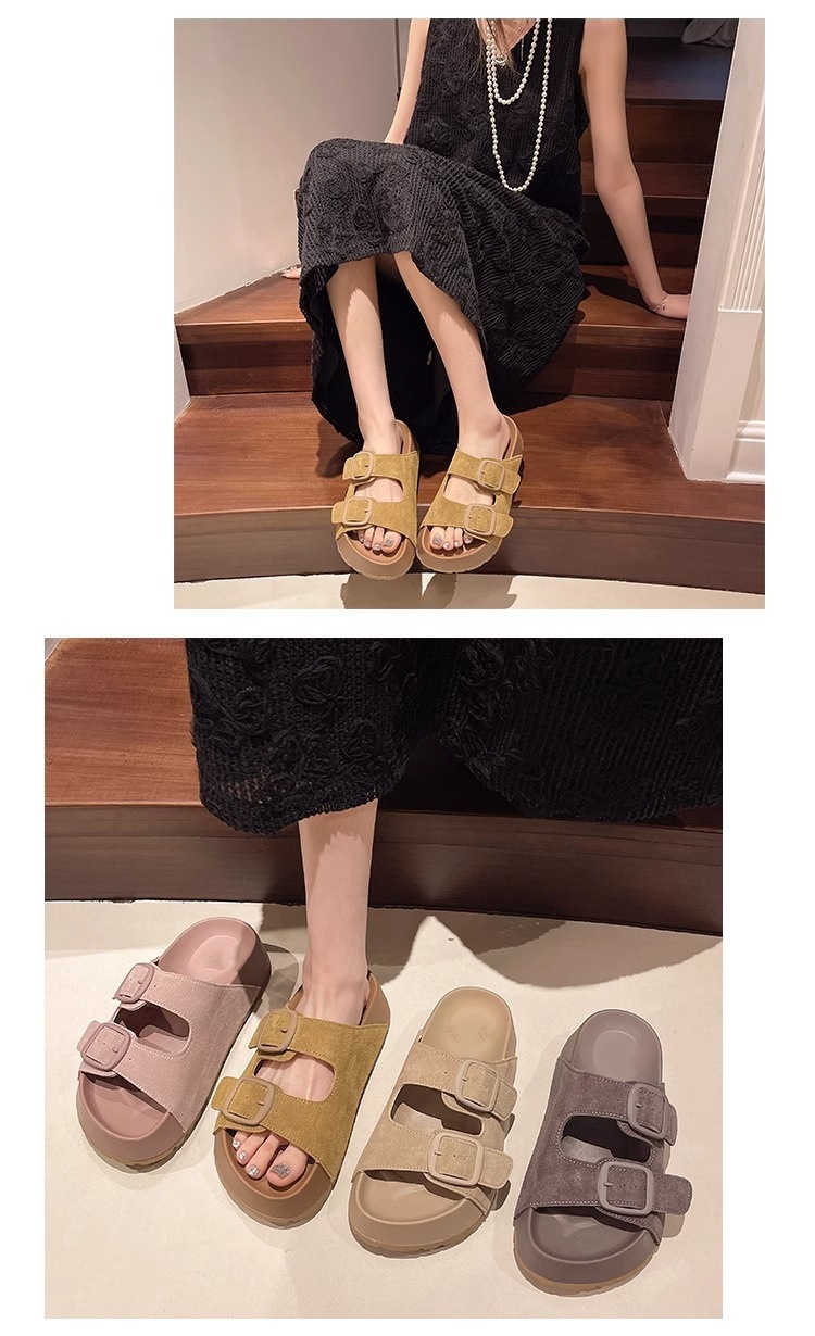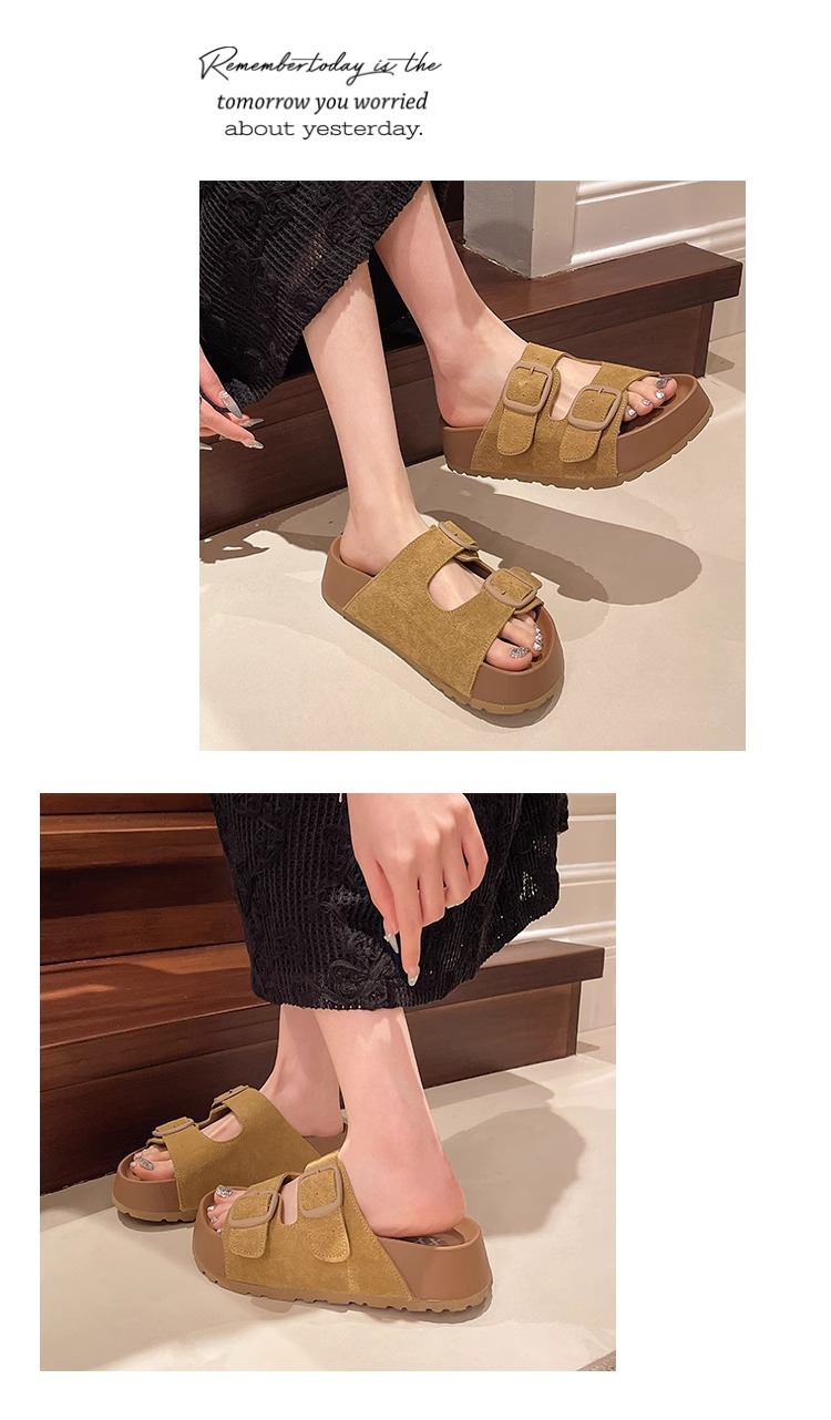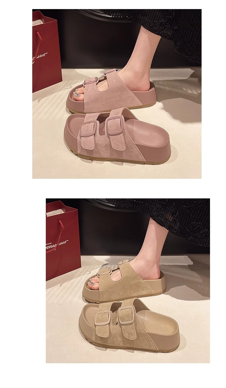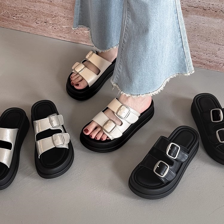 女性の夏のアウターウェア用厚底スリッパ 2025 新しいベルトバックルオープントゥカジュアルビーチシューズプラットフォームソールスリッパ