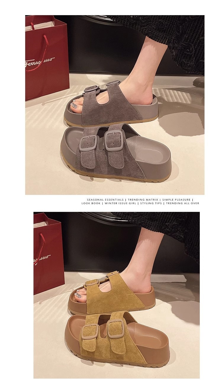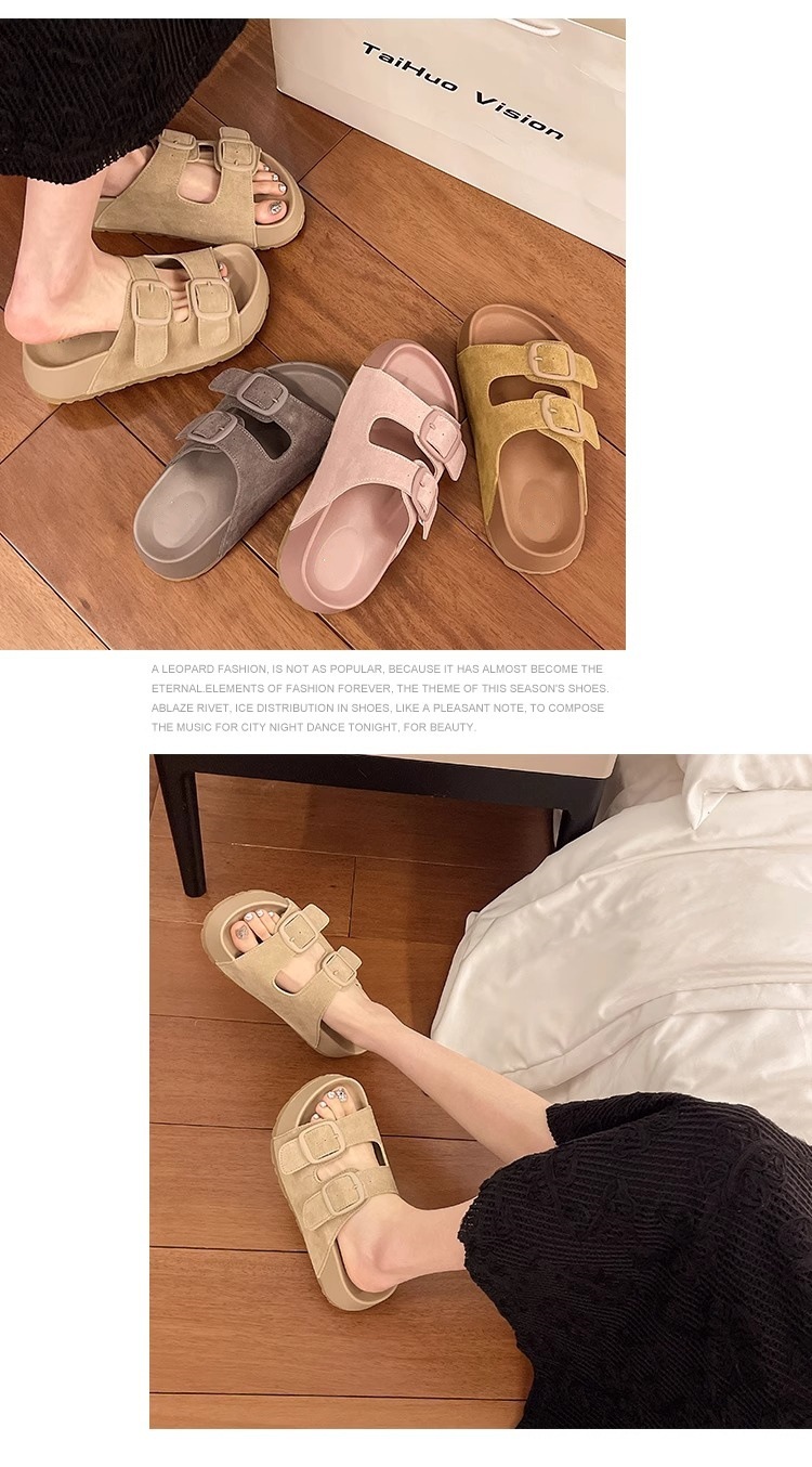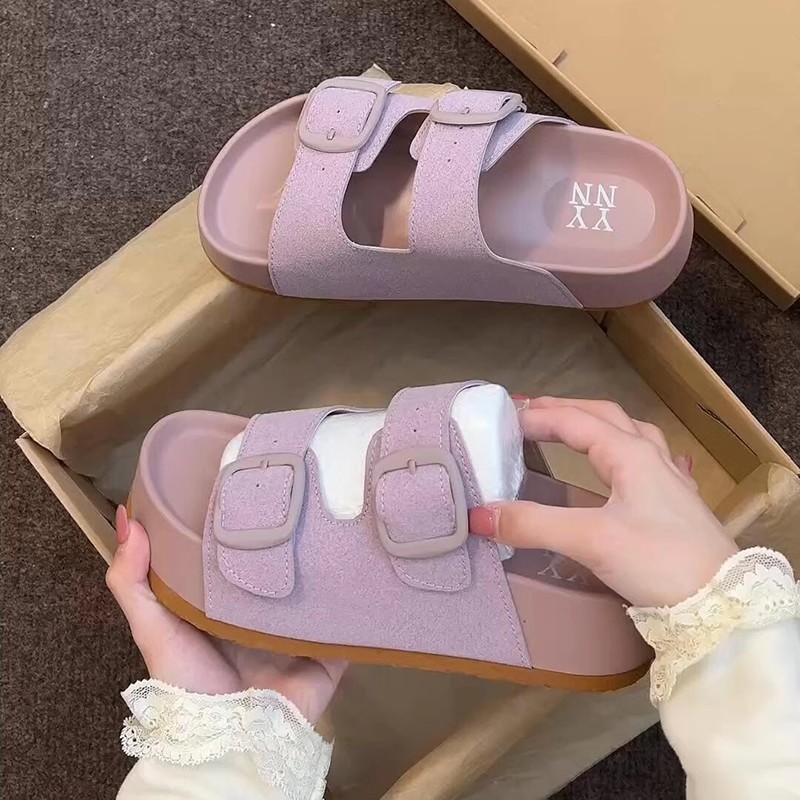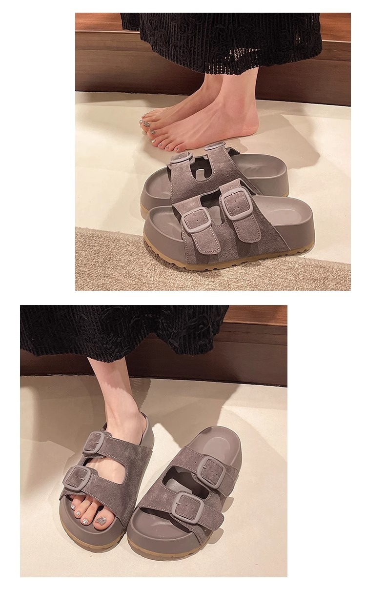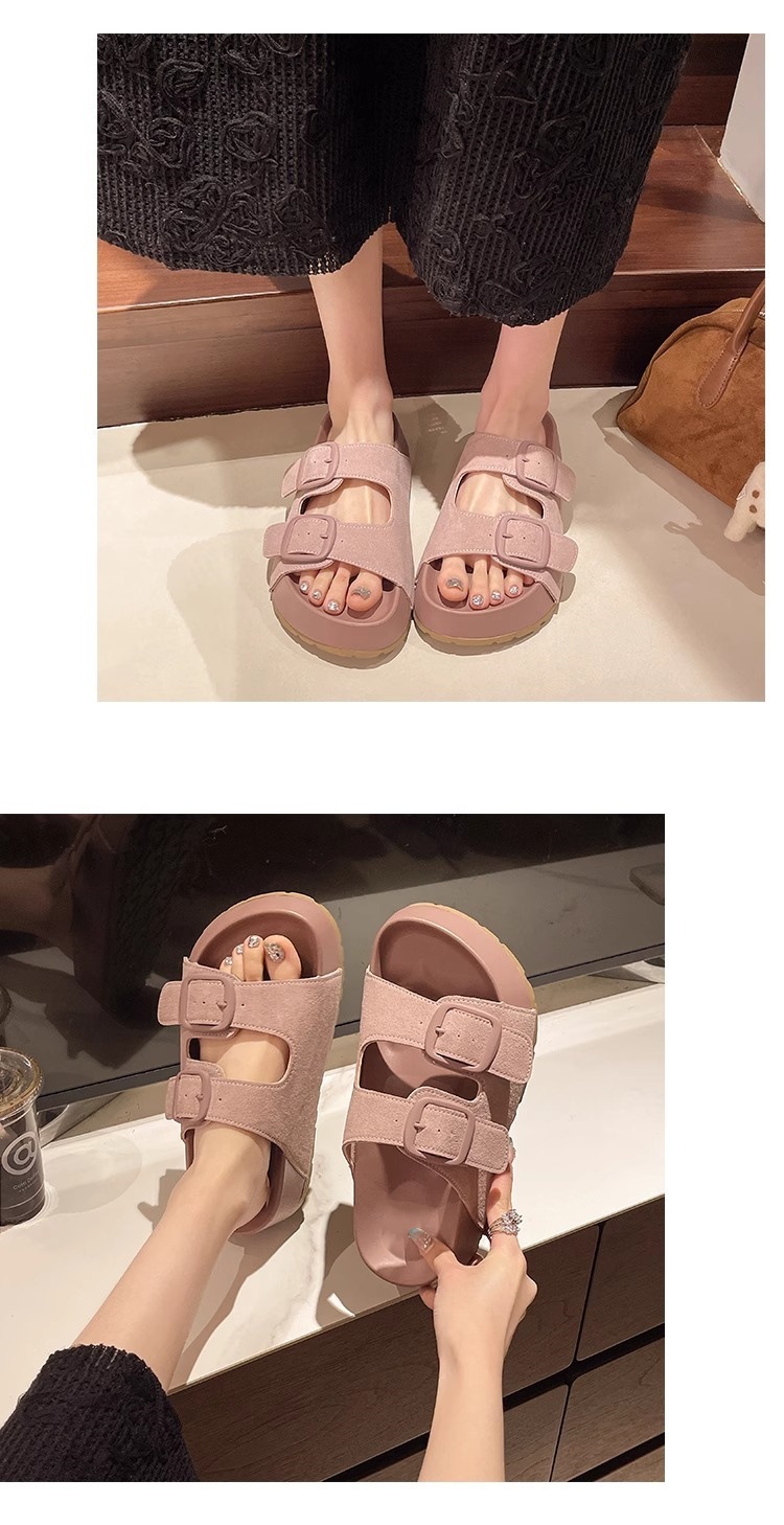女性の夏のアウターウェア用厚底スリッパ 2025 新しいベルトバックルオープントゥカジュアルビーチシューズプラットフォームソールスリッパ