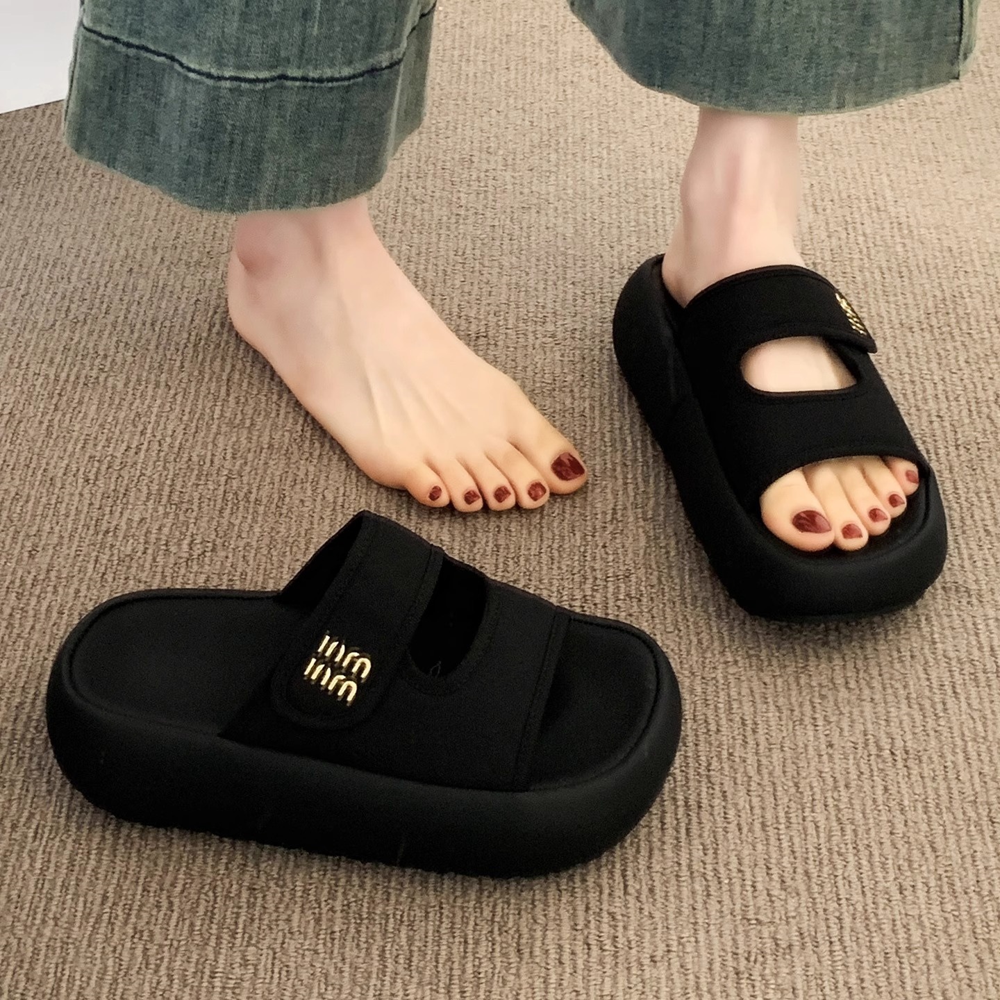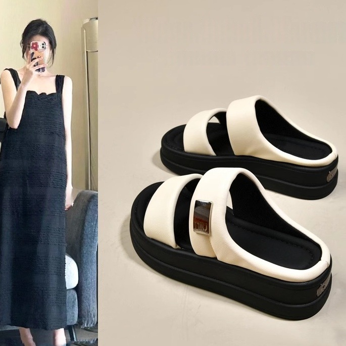 ネットセレブレトロ厚底スリッパ女性用 2025 夏の新しいアウターウェアファッショナブルで多用途なビーチサンダル女性用