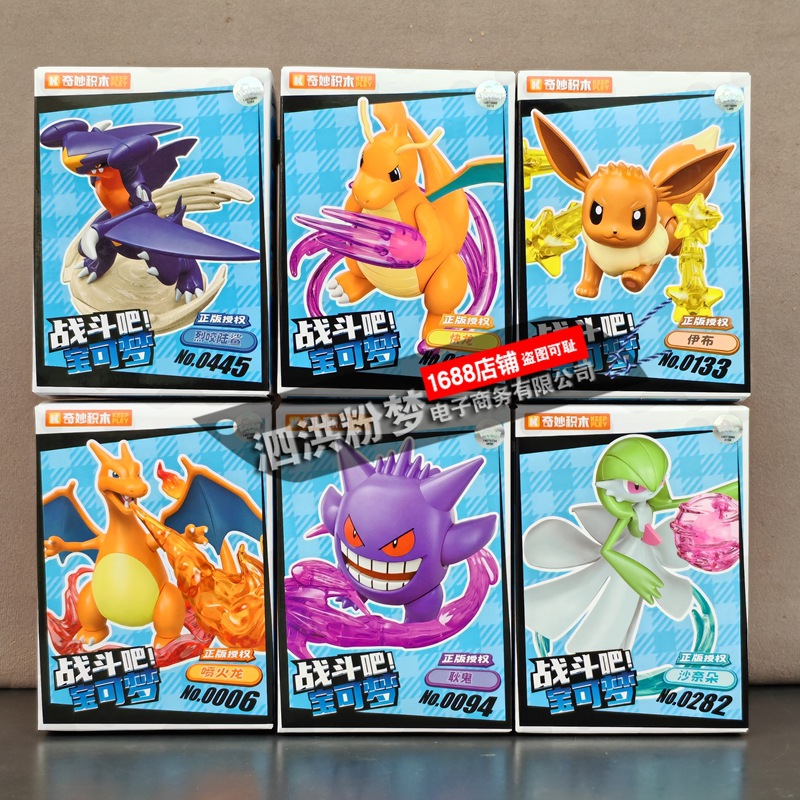 奇妙积木人宝可梦第二弹手办玩具喷火龙耿鬼伊布益智拼装玩具摆件