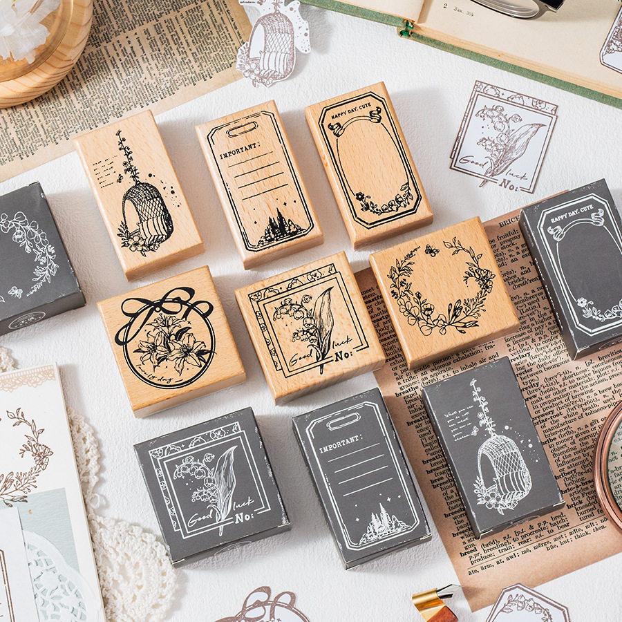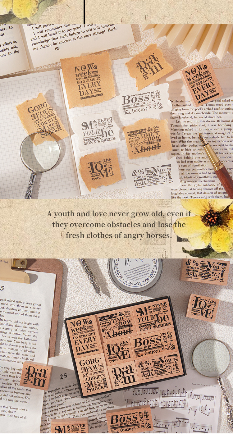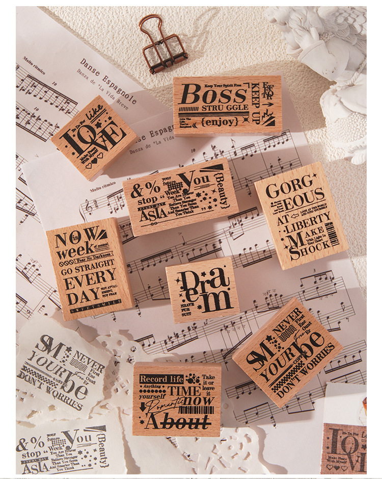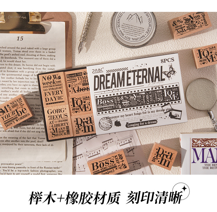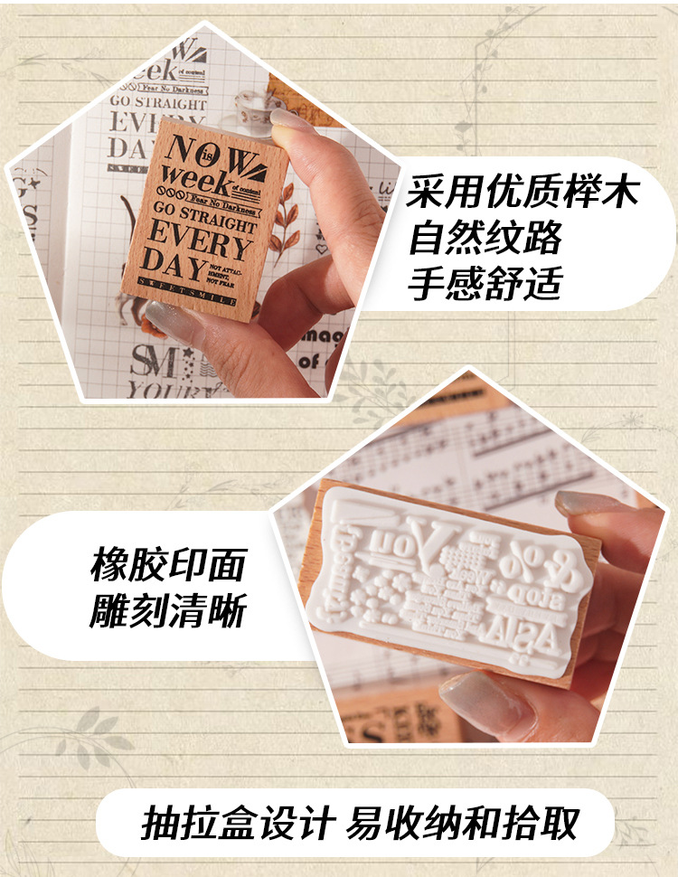 墨羽情书木质印章套盒diy手账日记装饰印画跨境复古榉木生活印章