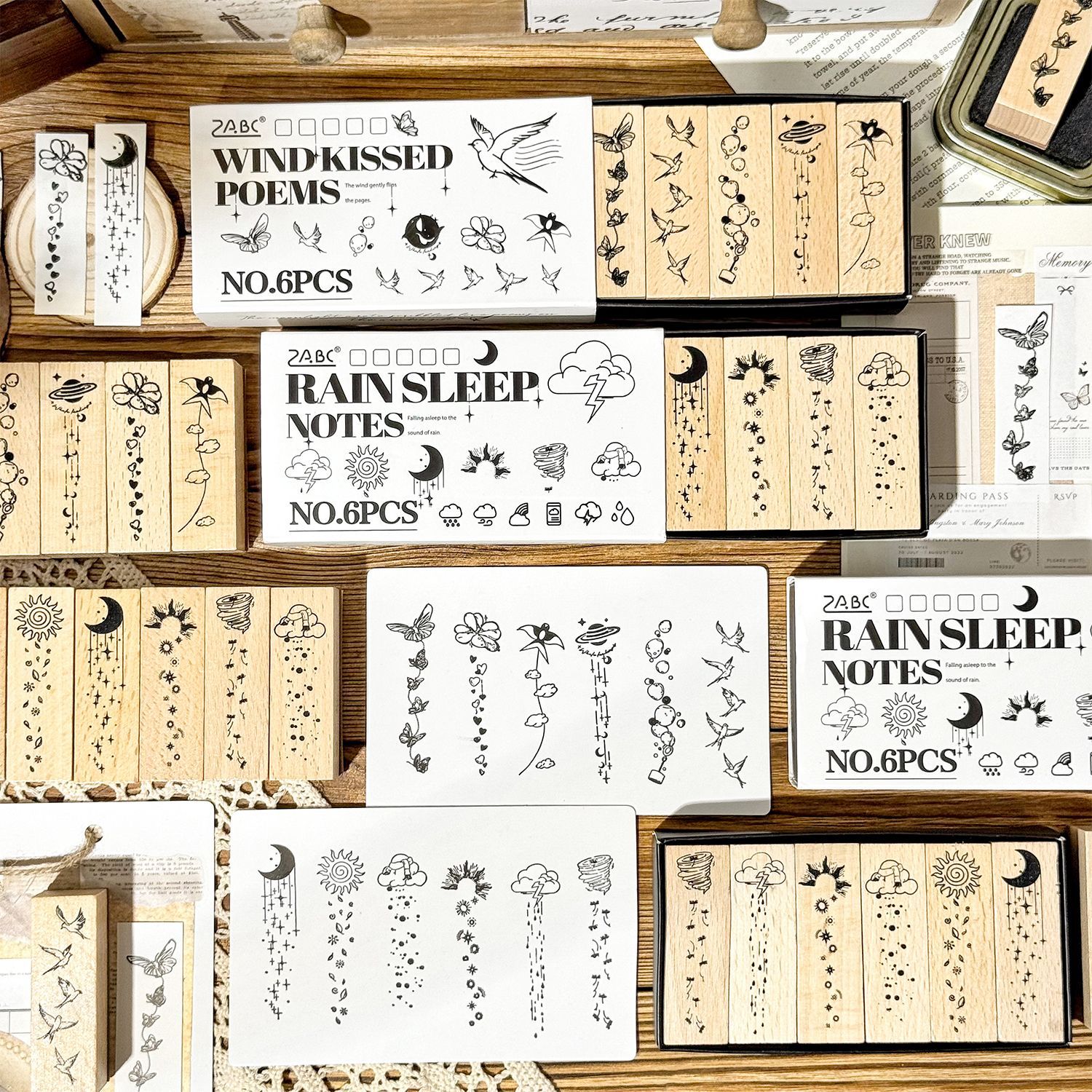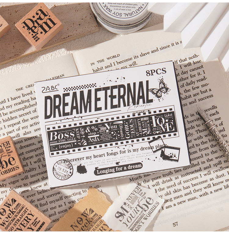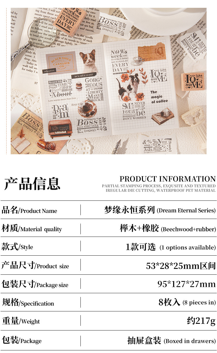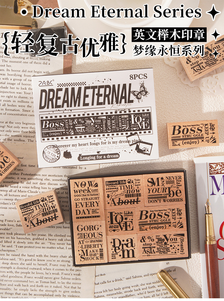 墨羽情书木质印章套盒diy手账日记装饰印画跨境复古榉木生活印章