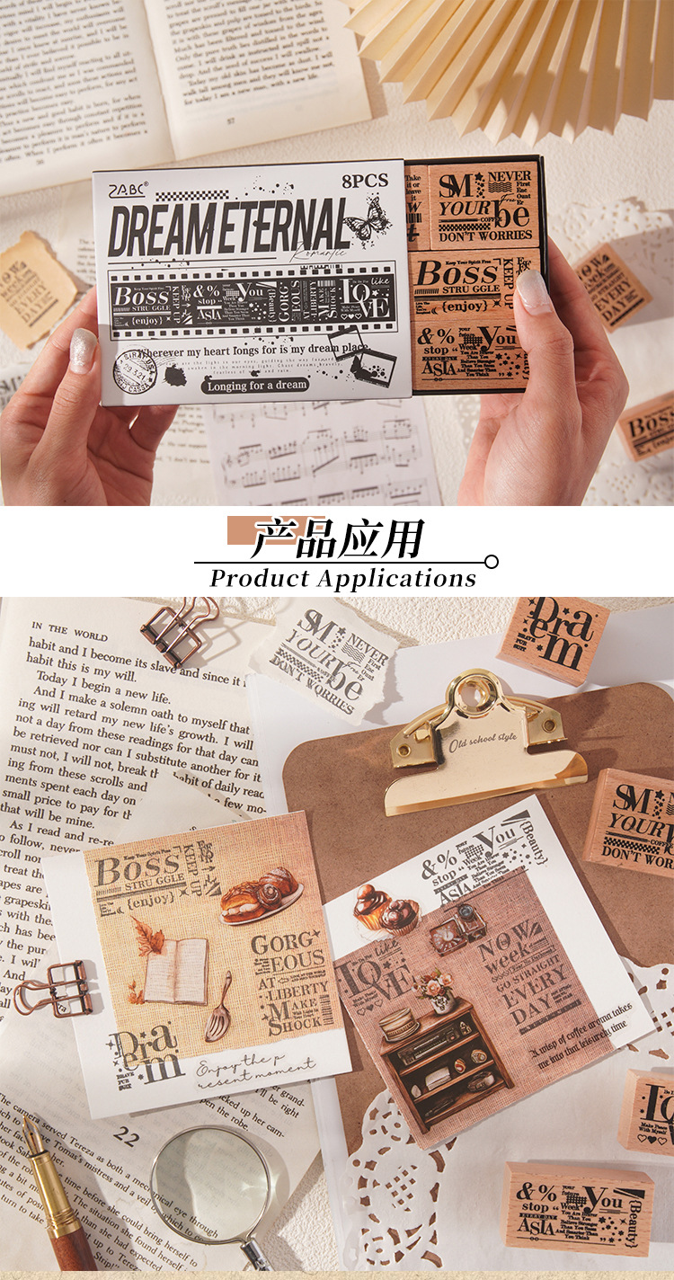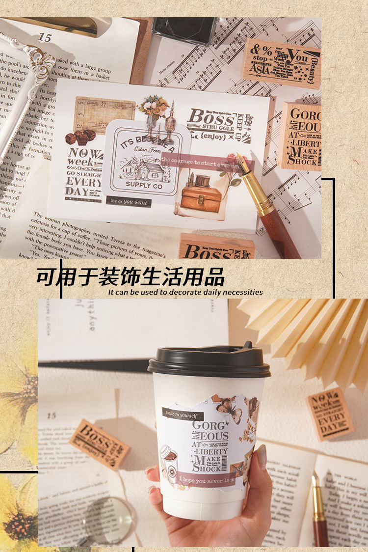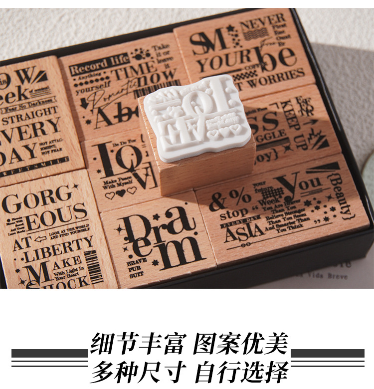Mengyuan 永遠の木製シールセット diy ハンドブック日記印刷スタンプクロスボーダーブナ材レトロ英語シール