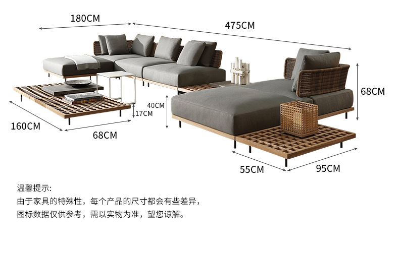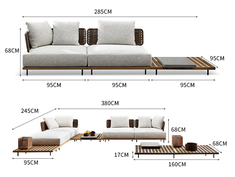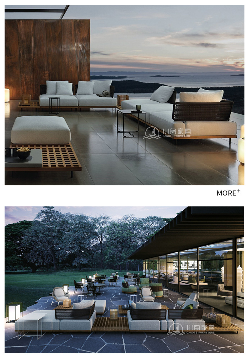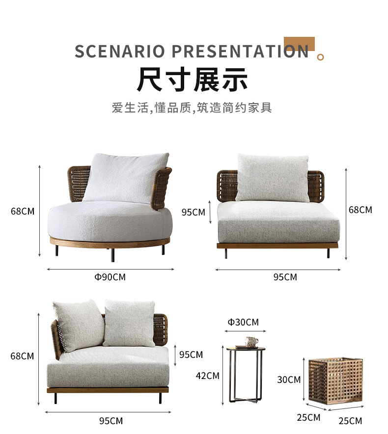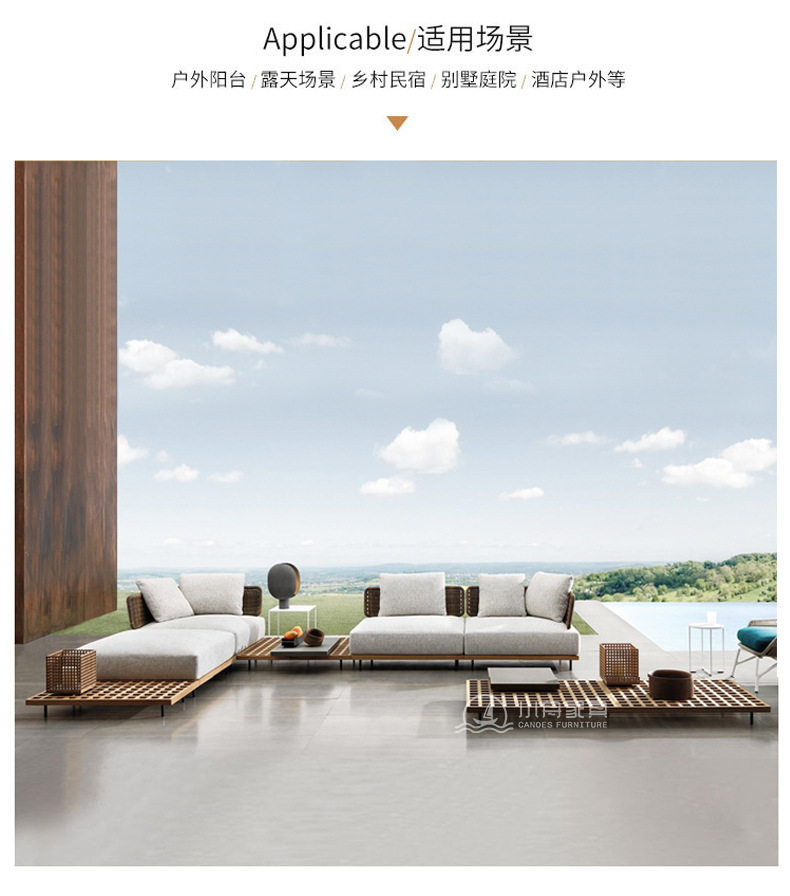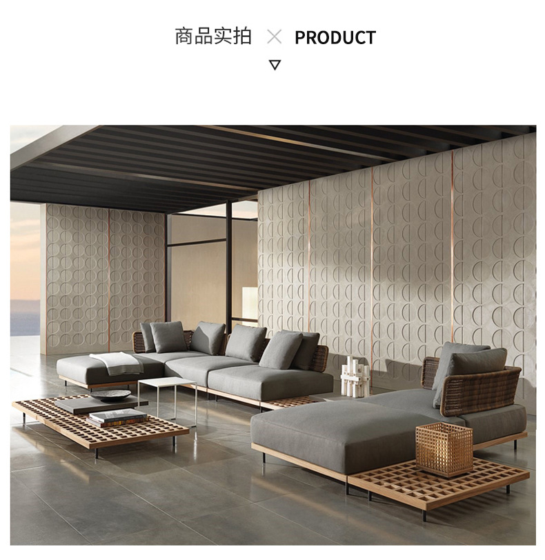 屋外ヴィラ中庭ソファロープ織りテラスガーデン家具屋外北欧ホテルテラスコンビネーションソファ家具