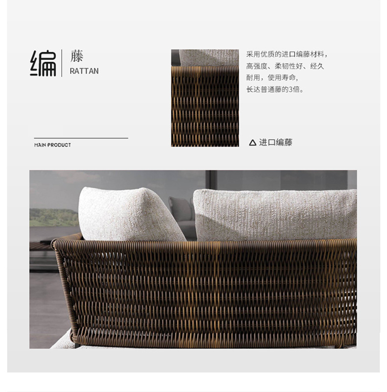 北欧中庭ガーデン籐ソファデザイナー屋外オープンエアバルコニーレジャー家具営業部屋外籐椅子