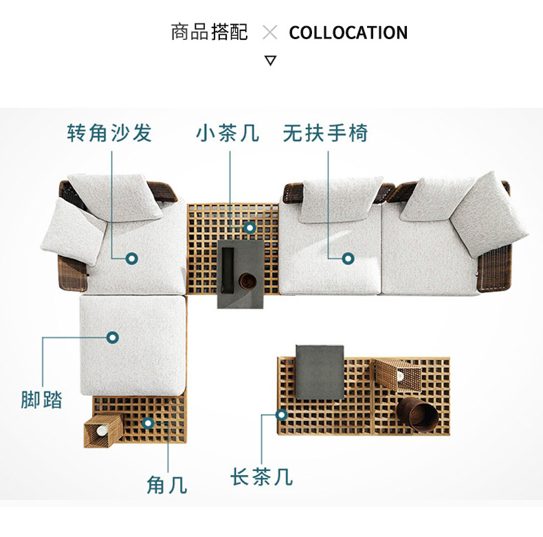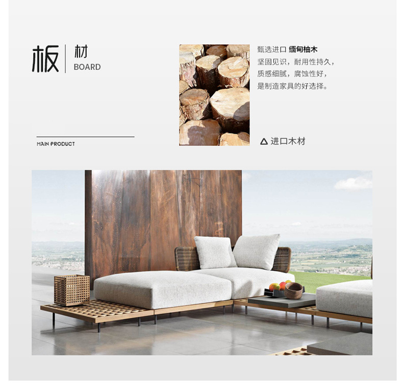 屋外ソファ中庭バルコニー屋外籐ソファチークヴィラホテルB&B屋外レジャーガーデン家具