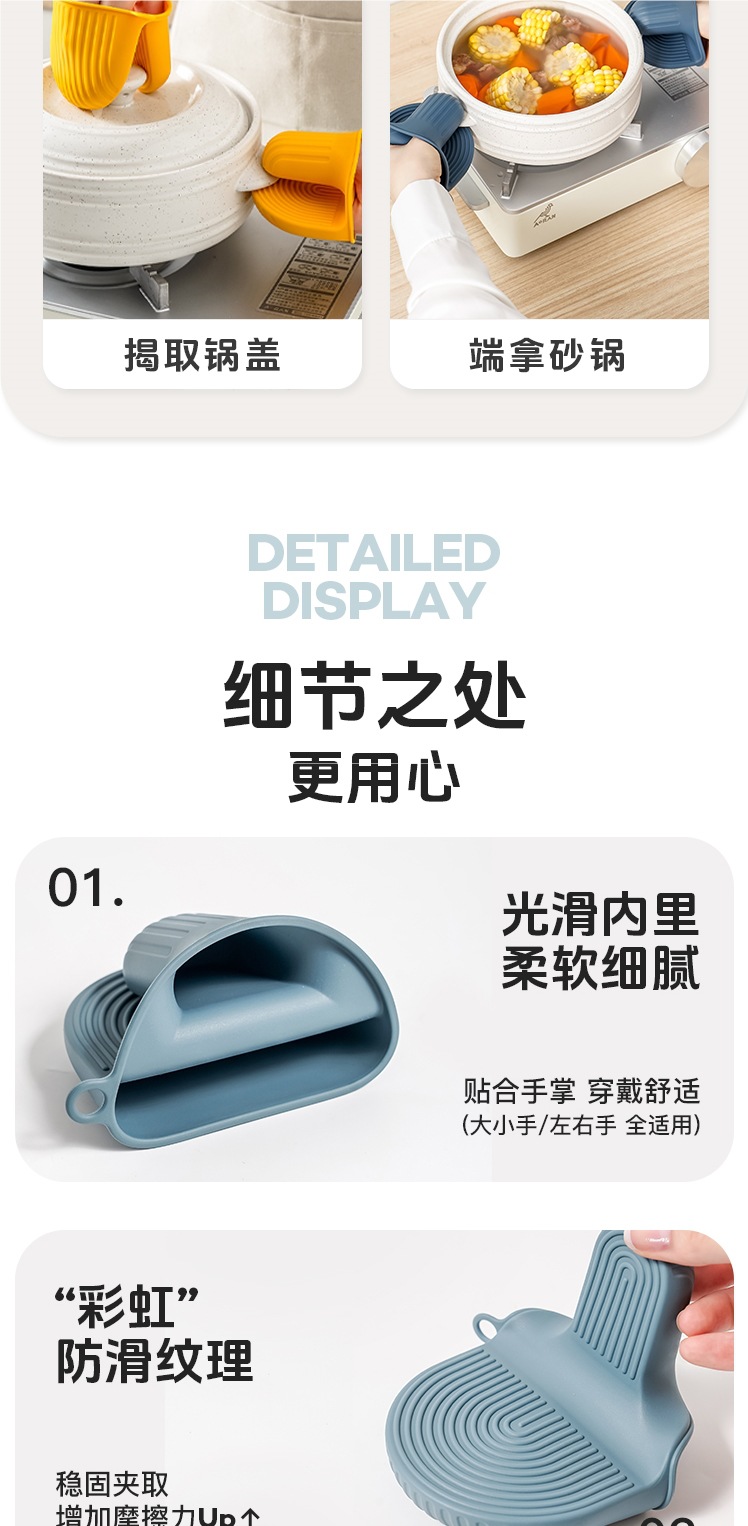 硅胶防烫夹不锈钢取碗夹厨房防滑提盘夹家用餐桌隔热垫微波炉手夹