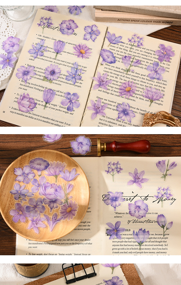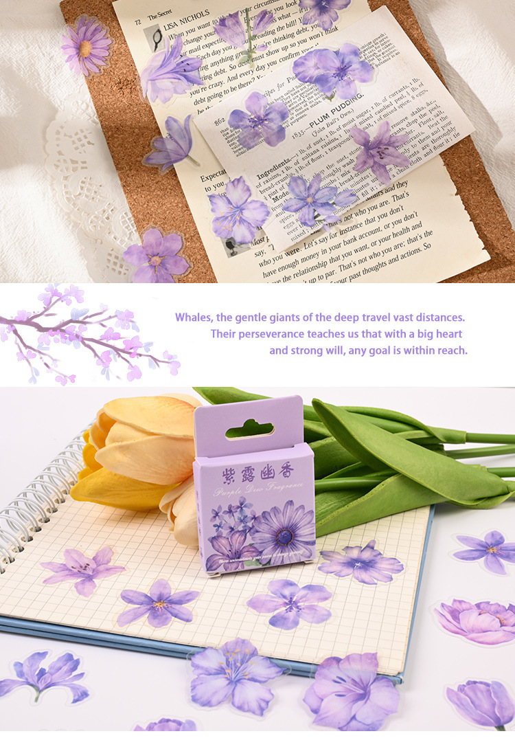 紫露の香りシリーズステッカー透明 PET ハンドブック Guka 素材コラージュ diy 装飾花自己粘着