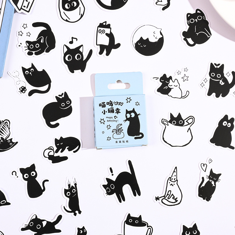 糖詩萌ペット動物シリーズボックス入りステッカー いたずらっ子黒猫 かわいい楽しいシールステッカー ハンドブックDIYデコレーションステッカー