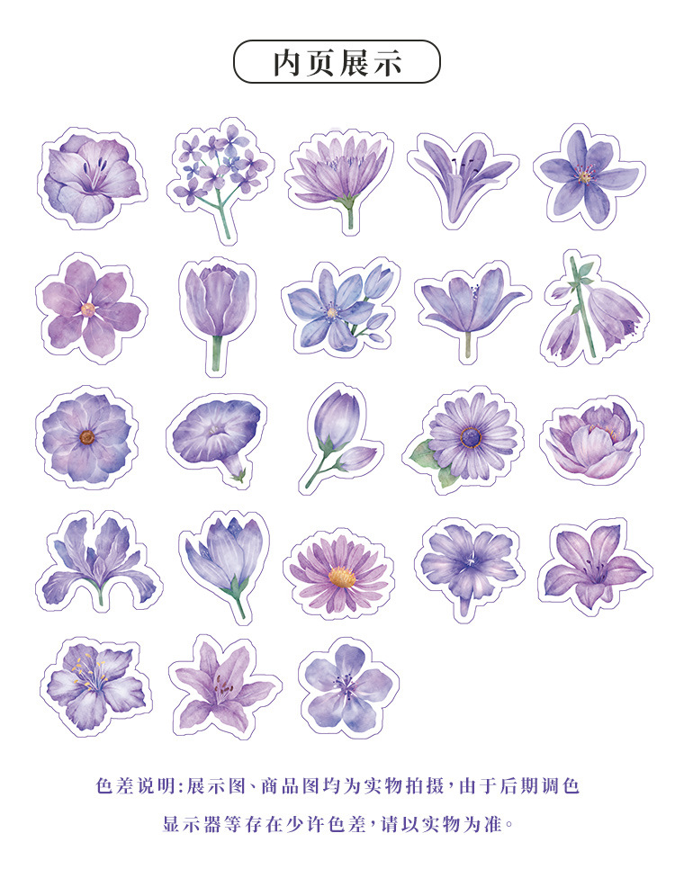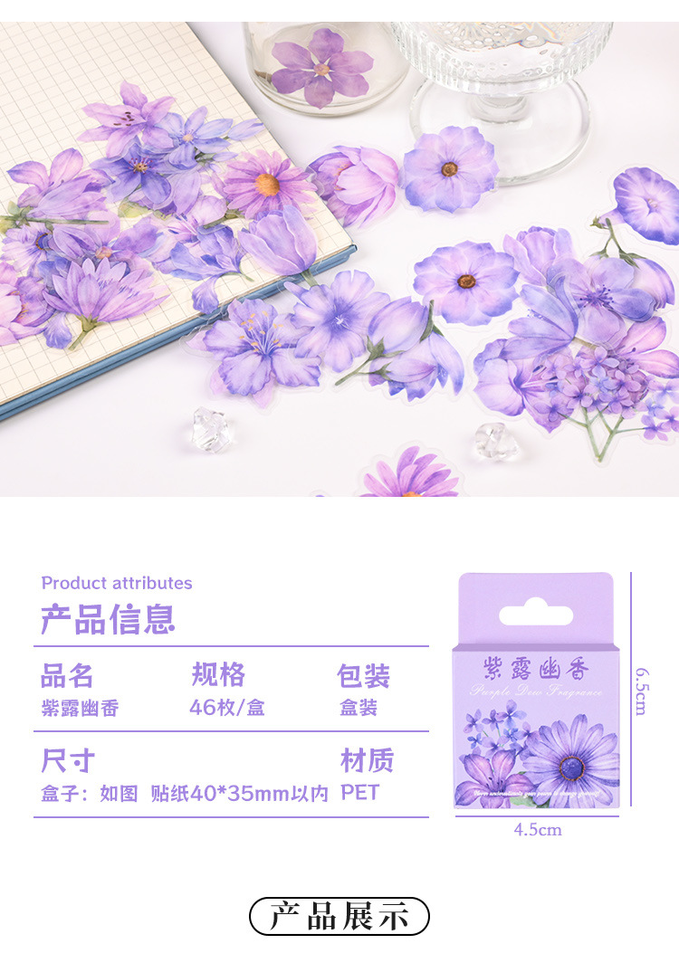 イートリ 箱入りステッカー 妖精の紫煙蘭 フレッシュな植物と花 ハンドブック装飾素材ステッカー 46枚