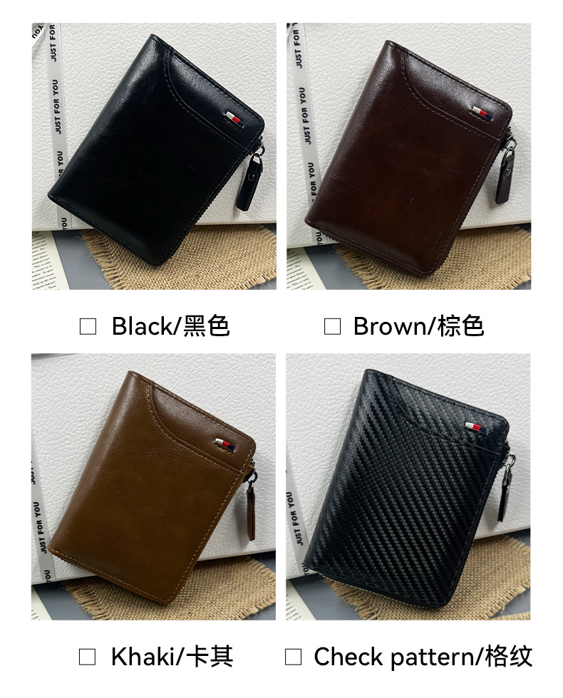 跨境男士钱包男复古短款拉链钱夹拼接压花新款多功能卡包男式皮夹