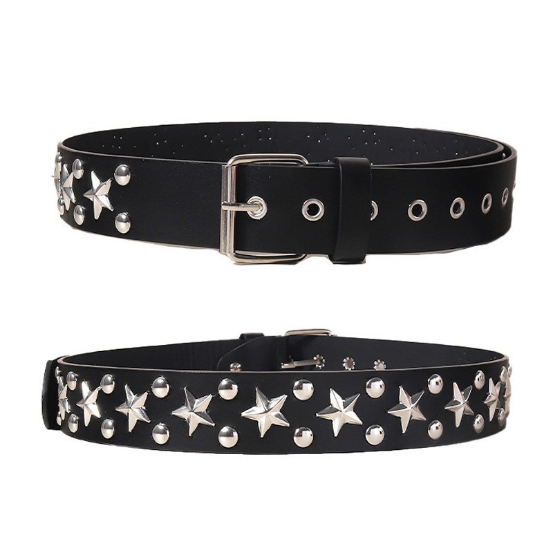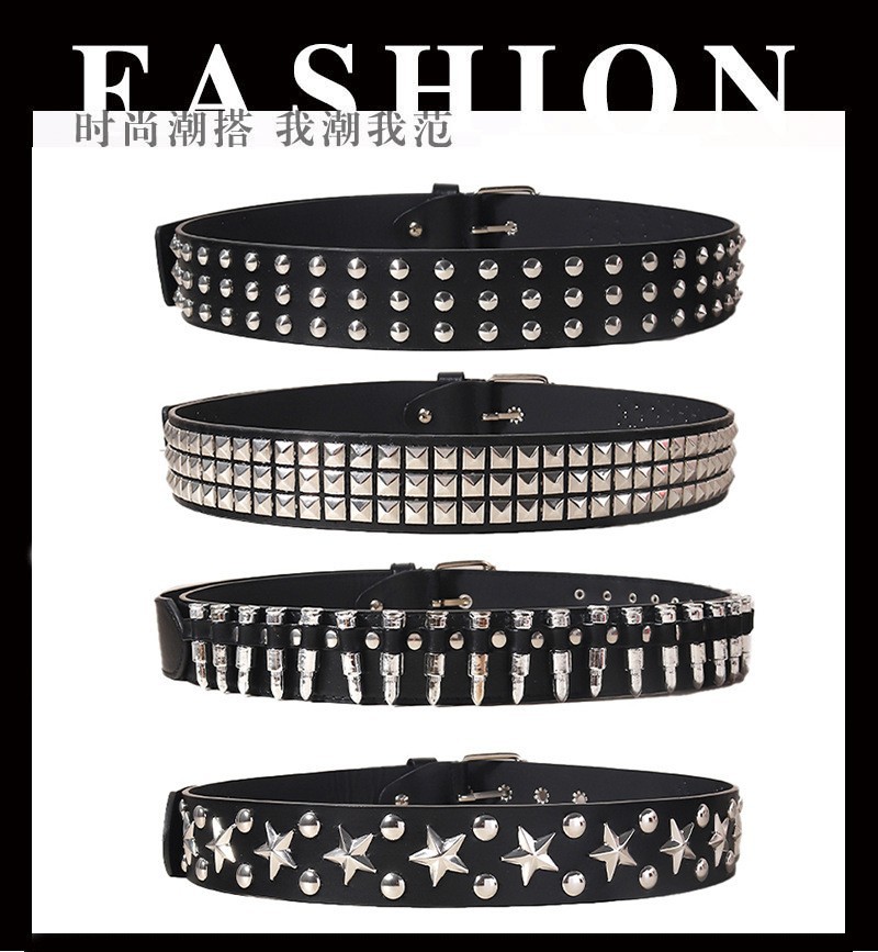 パンクスタイル弾丸ベルト重金属ベルト黒ホットガールパーソナライズ女性五芒星スクエア牛リベットジーンズ