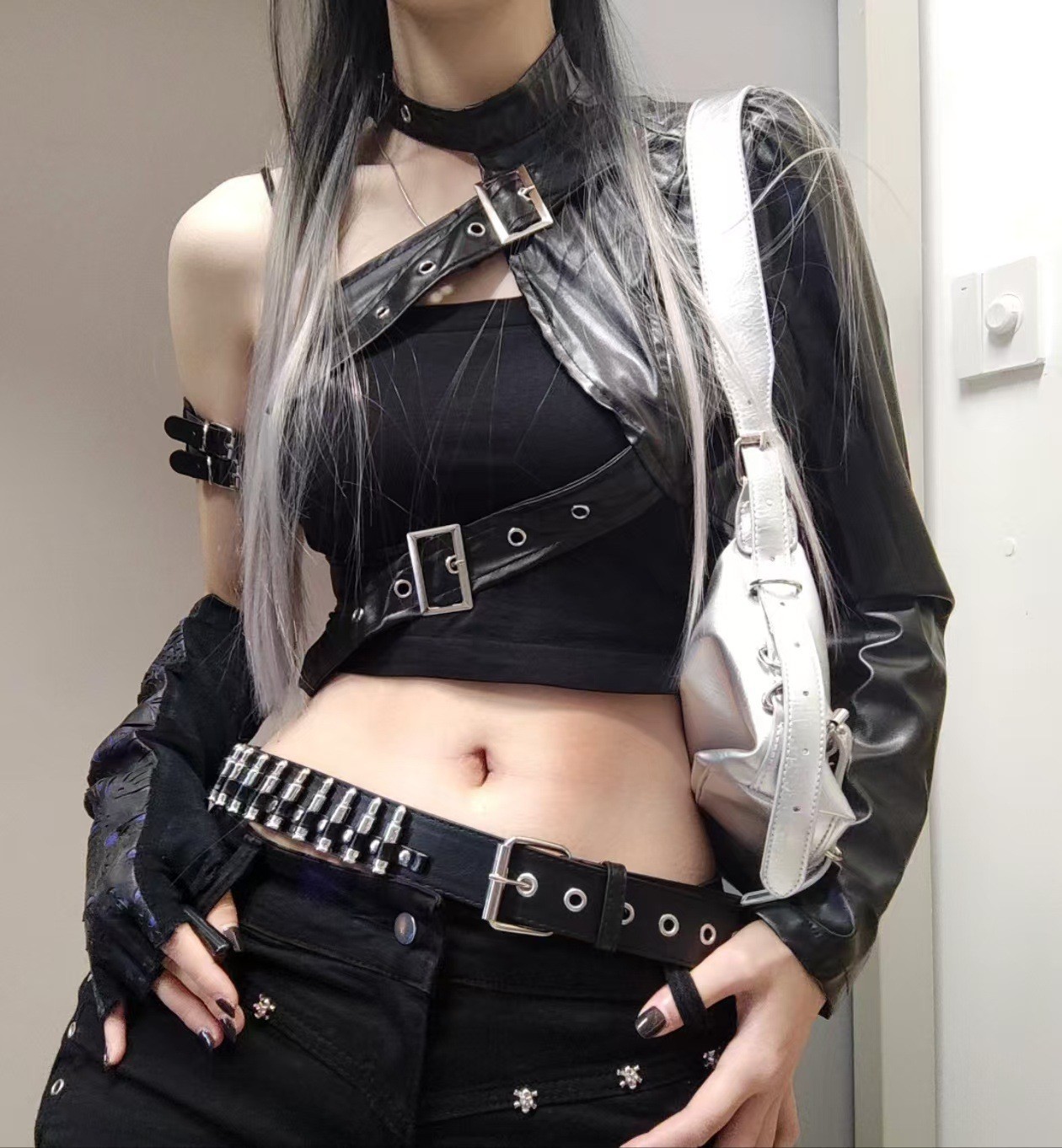ホットガール渋谷ファッションヒップホップパンクサブカルチャーアクセサリースカルパーソナリティリベットベルトベルトY2K