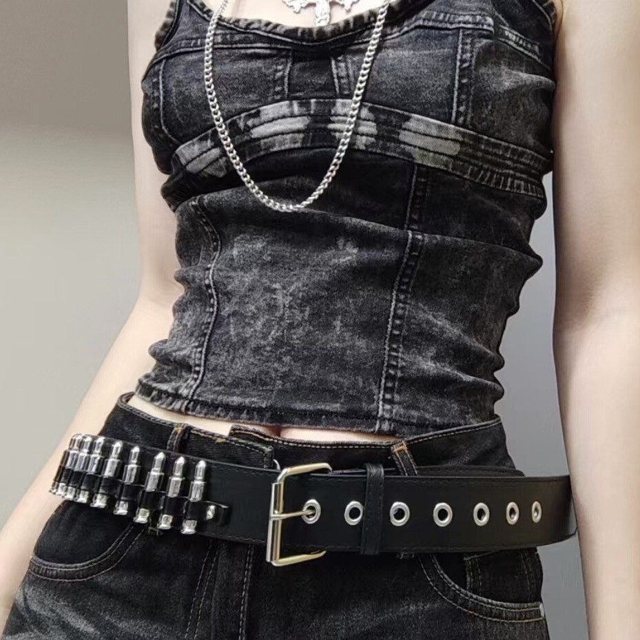 新型越境アメリカ式ファッション弾頭象眼ベルト女性個性パンク装飾ズボンベルトinsメーカー直販