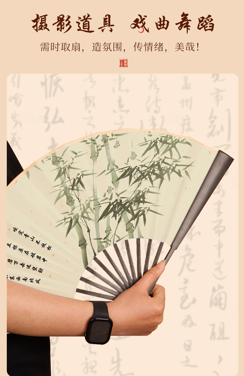 空白宣纸折扇中国风复古扇面书法广告扇扇子批发中式竹质激光雕刻