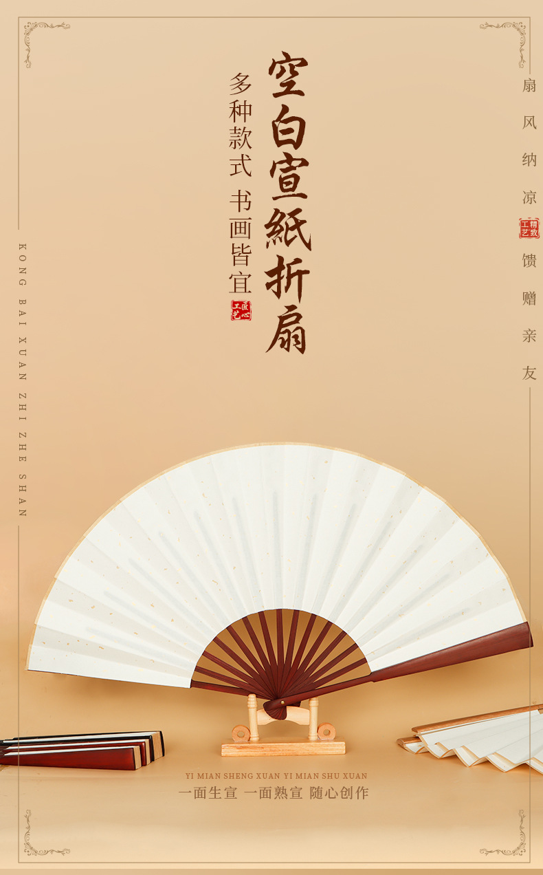カスタマイズされた扇子、空白の書道と絵画、ライスペーパー扇子、書道と絵画扇子、広告扇子、DIY卸売、無料デザイン