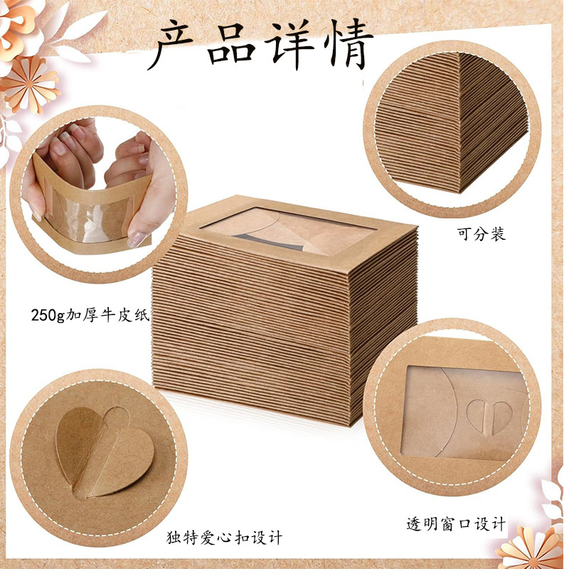 亚马逊复古透明牛皮纸开窗贴窗PET爱心扣彩色会员卡创意小信封