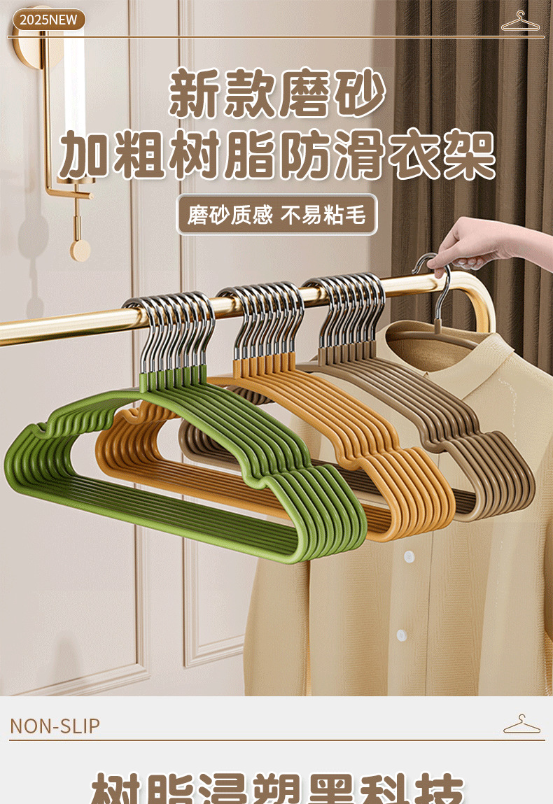 树脂衣架家用挂衣晾衣架磨砂防滑成人衣撑家用衣柜宿舍衣架批发