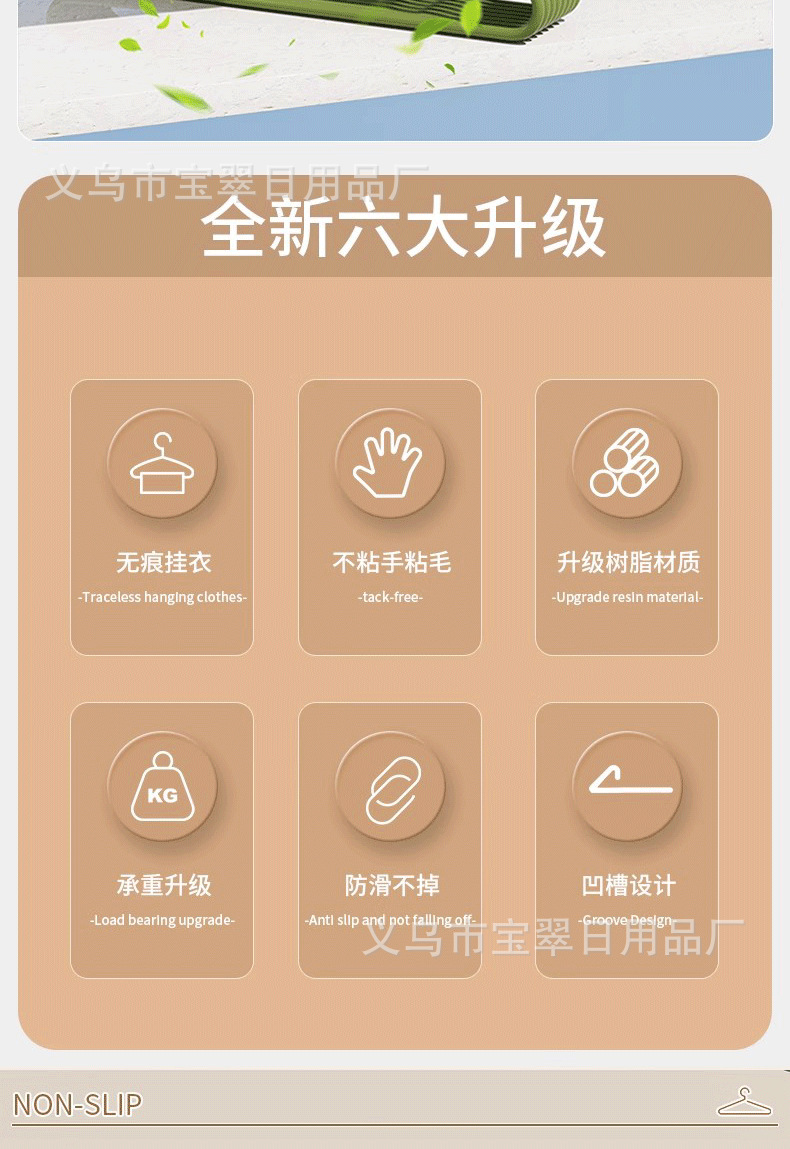 晾衣架家用挂衣阳台晒衣服加厚粗防滑无痕阳台树脂弧形成人衣撑子
