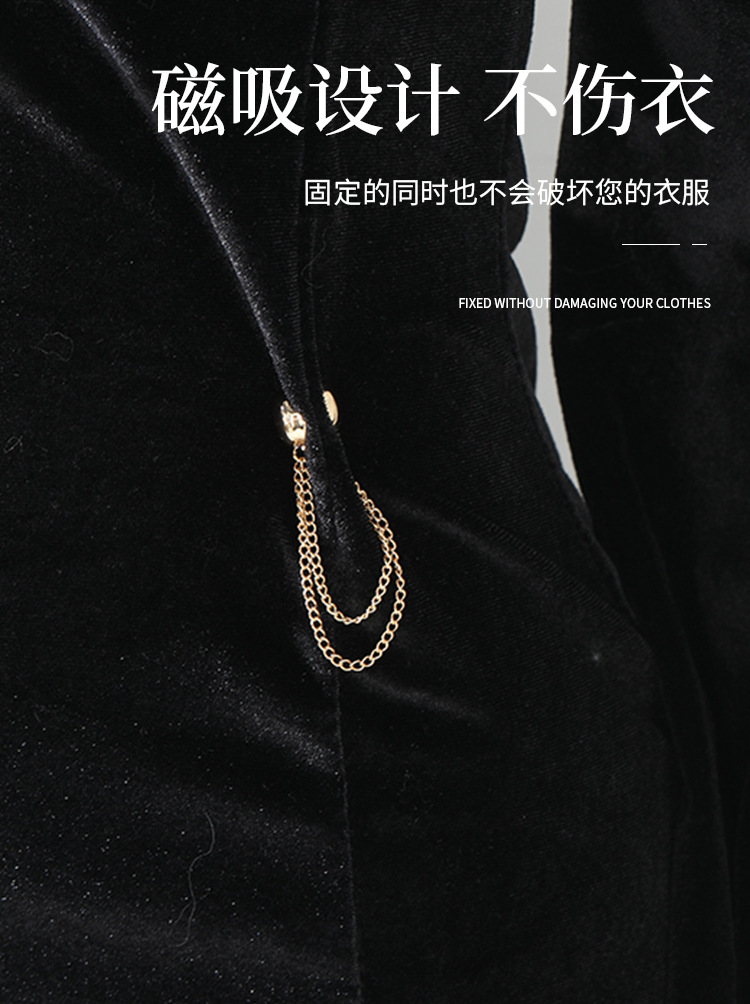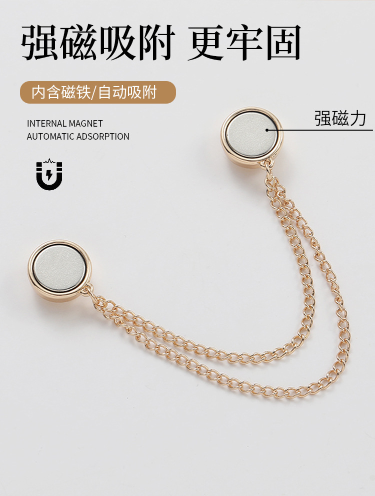チェーン磁気バックルでズボンの裾を床から遠ざける、袖口に金属製の磁気バックルで固定、ズボンの裾を長くする必要がなく、縫い目がなくなります。